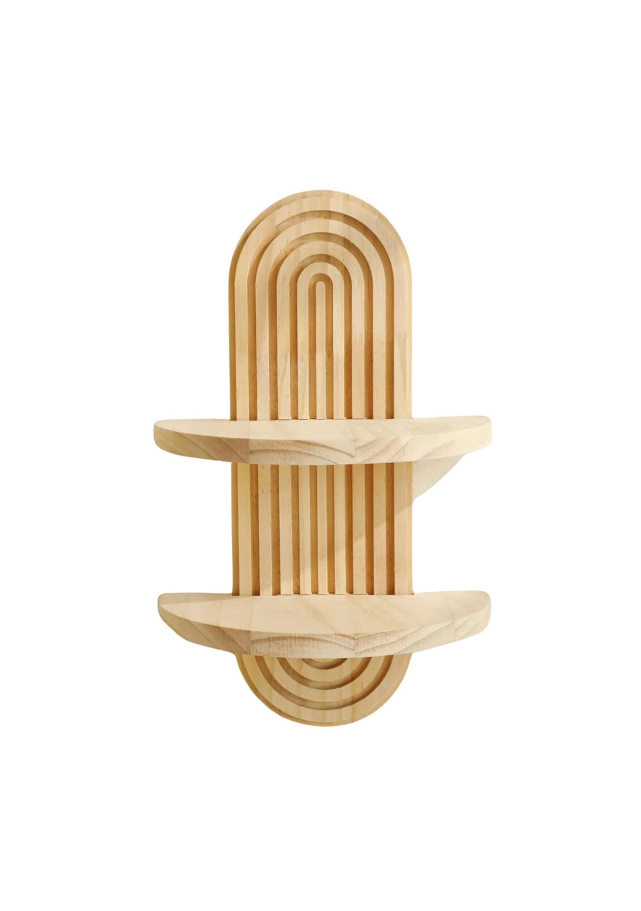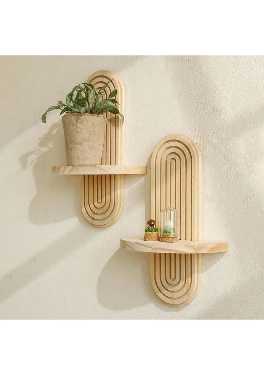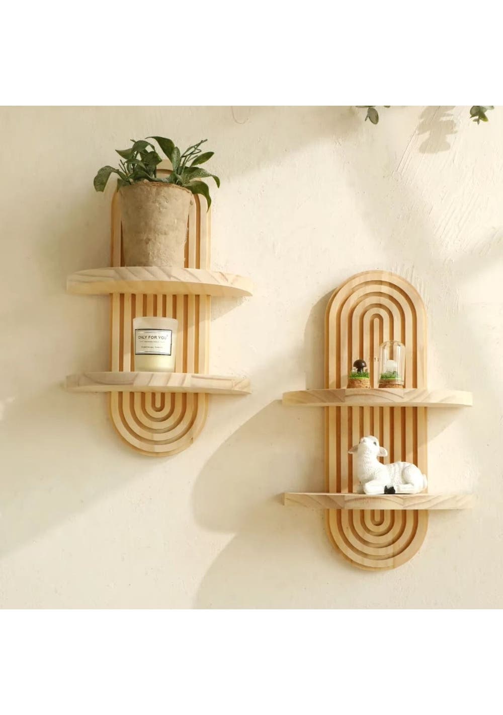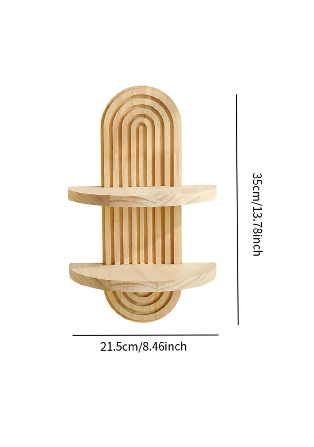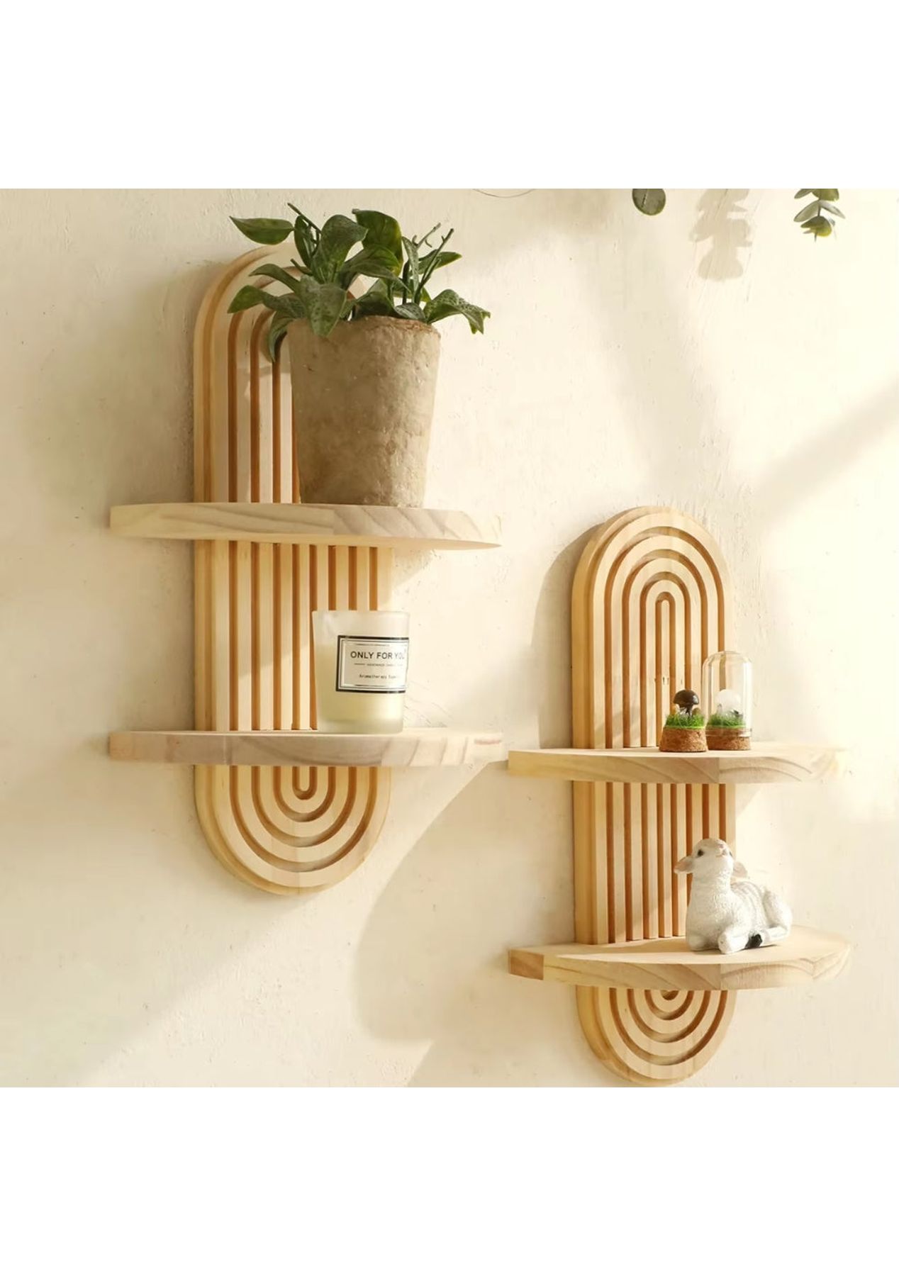 Product Description:Add a touch of charm and functionality to any room with boho style wooden wall shelves. Designed with a modern geometric pattern and natural wood finish, these shelves bring both style and practicality to your living space. Ideal for displaying plants, decorative items, or keepsakes, they provide a unique focal point in any setting.These wall-mounted shelves offer a space-saving solution while enhancing the aesthetic appeal of your room. The geometric design adds visual interest and a bohemian vibe, making them a perfect addition to contemporary interiors. Whether used in a living room, bedroom, or hallway, they blend effortlessly with various decor styles.Crafted from high-quality wood, the shelves are both lightweight and durable. The natural wood finish adds warmth to the space, while the sturdy construction ensures long-lasting performance. Easy to install, they mount securely to the wall and remain stable under daily use.Each set includes multiple shelves that can be arranged in creative configurations to suit individual style and storage needs. Perfect for showcasing books, photo frames, or small decorative pieces, these boho shelves offer endless decorating possibilities while keeping surfaces clutter-free.Product Specification:Material: WoodColor: WoodSize: 21.5 x 35 cmWeight: 514gFunction: Wooden Wall ShelfPackage Inclusion:1 x Wooden Wall Shelf