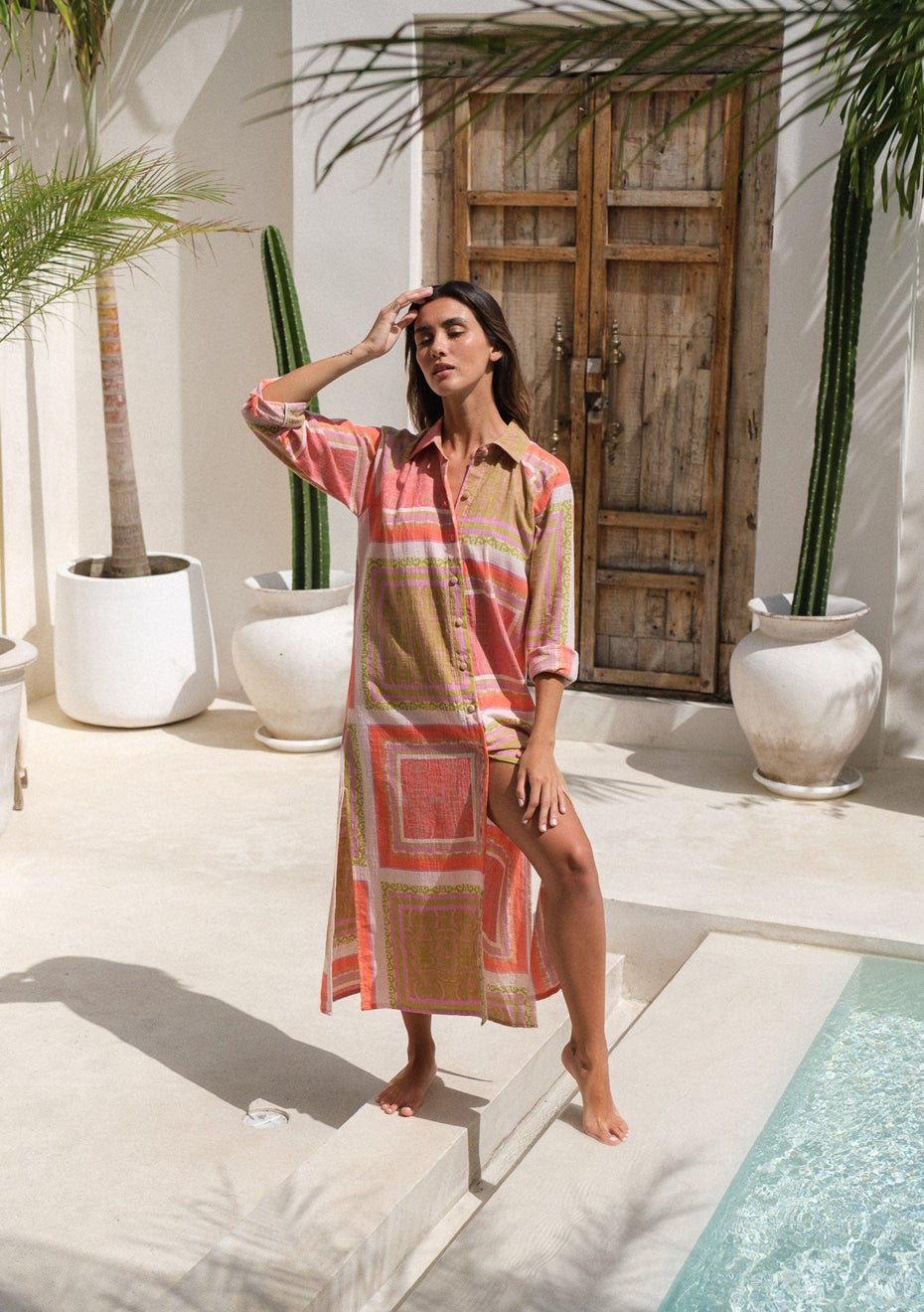 Florencia The Label - Blanca Maxi Shirt Dress - Catalina Tile