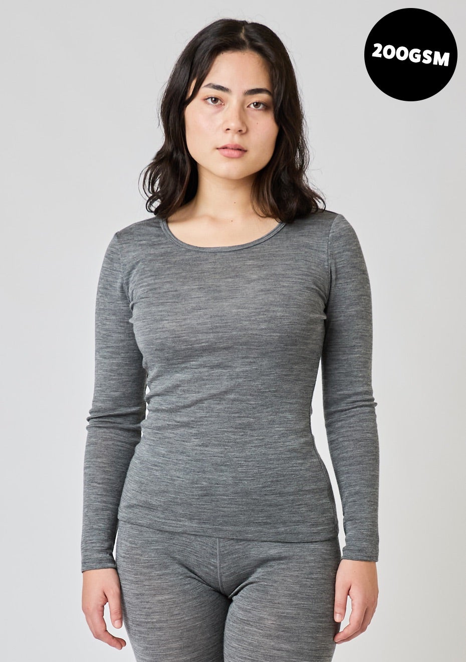 Alpine Essentials - 100% Merino Womens Long Sleeve Tee 200gsm - Grey MarlePREORDER