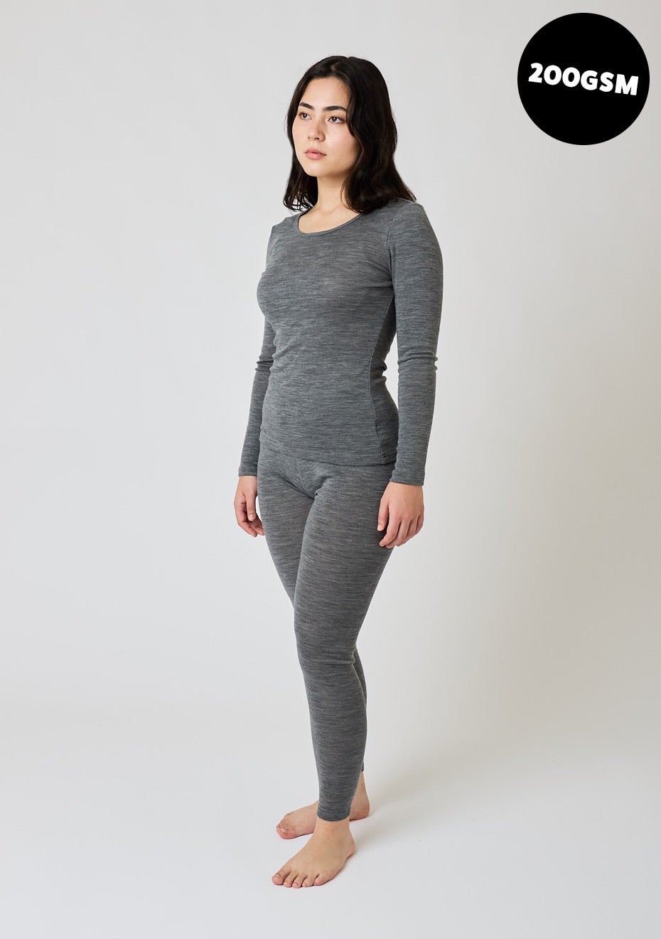 Alpine Essentials - 100% Merino Womens Legging 200gsm - Grey MarlePREORDER
