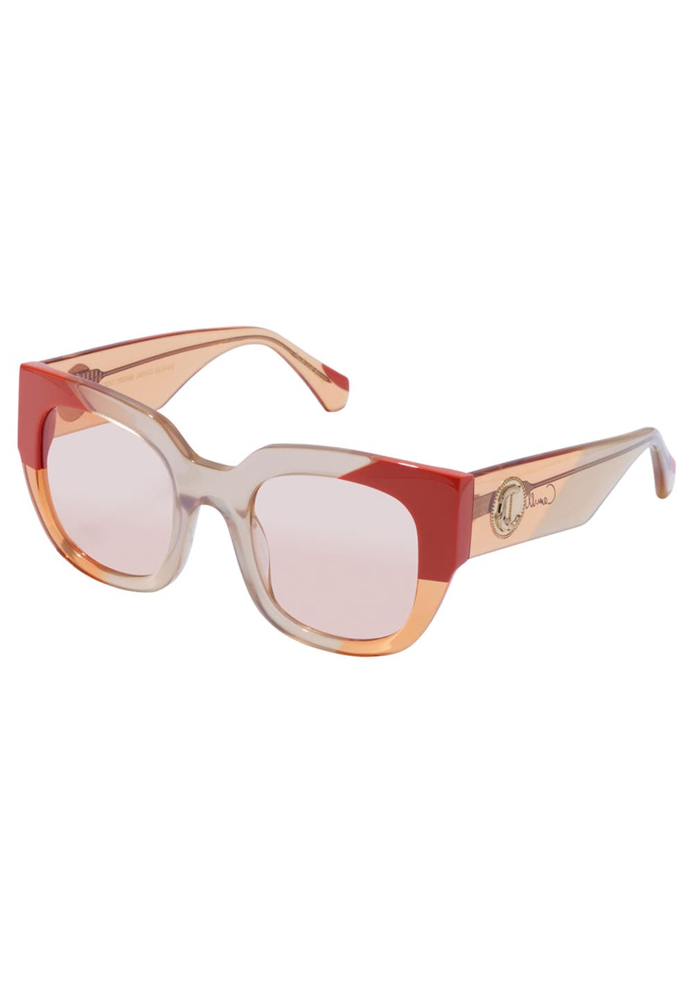 Modern square in bold, oversized proportions Iconic C metal pin badge features on both temples Contrasting acetate lamination detailing Packaged with Camilla hardcase and cleaning cloth Designed in Australia Cornsilk/tangerine acetate frame featuring light amber tint lenses TECHNICAL SPECIFICATIONS: Handcrafted using luxurious acetate Features moulded nose pads for fit and comfort Category certified lenses for clarity, durability and sun comfort Premium quality, gold wire core and hinges