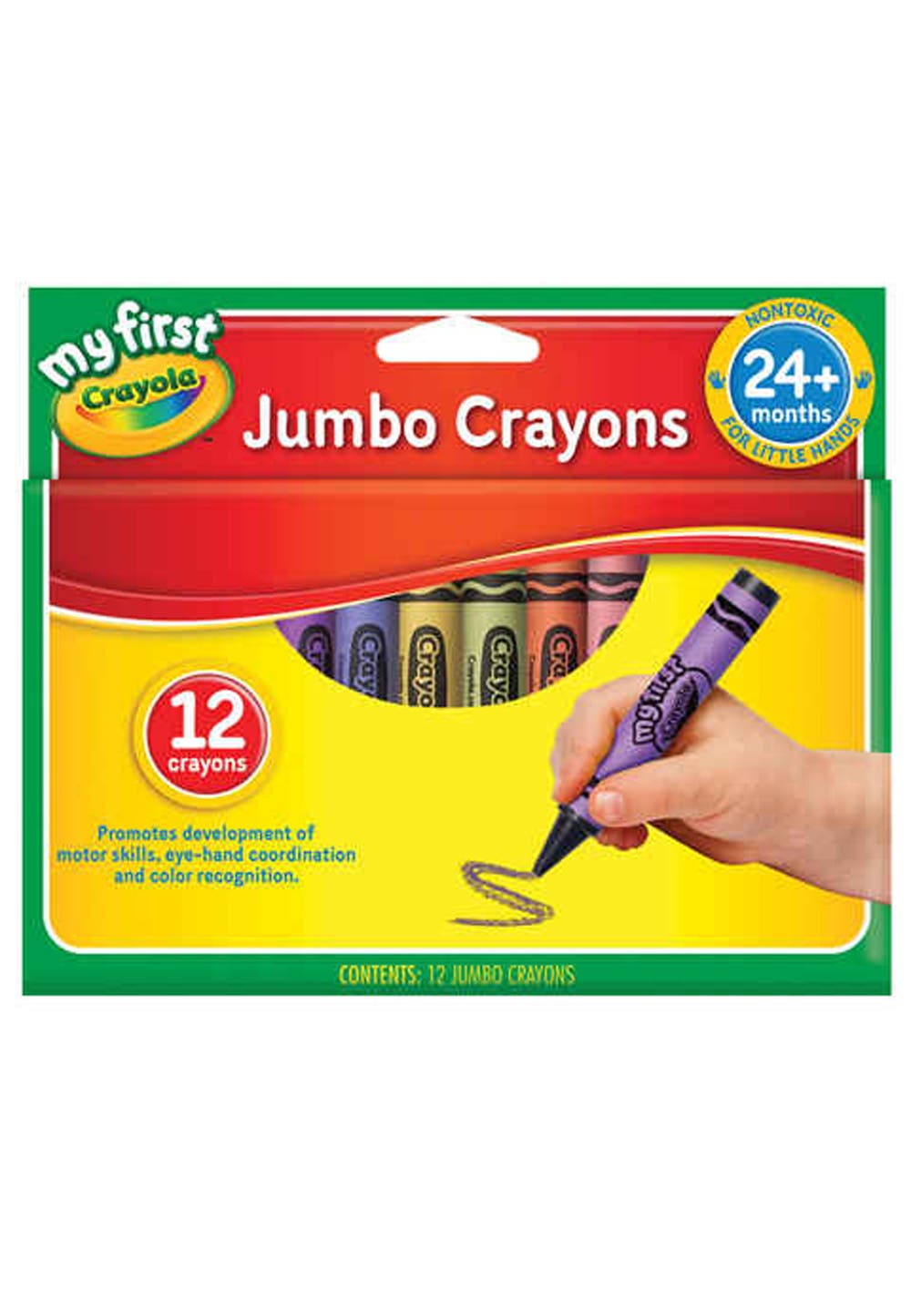 Crayola My First Crayons were specially designed to be your child's first crayon. Their large size makes them easy to hold and hard to break. Coloring is an important part of your child's creative development and these extra large crayons were designed to help teach motor skills, eye hand coordination and color recognition. Includes 12 different colors. Age 2+