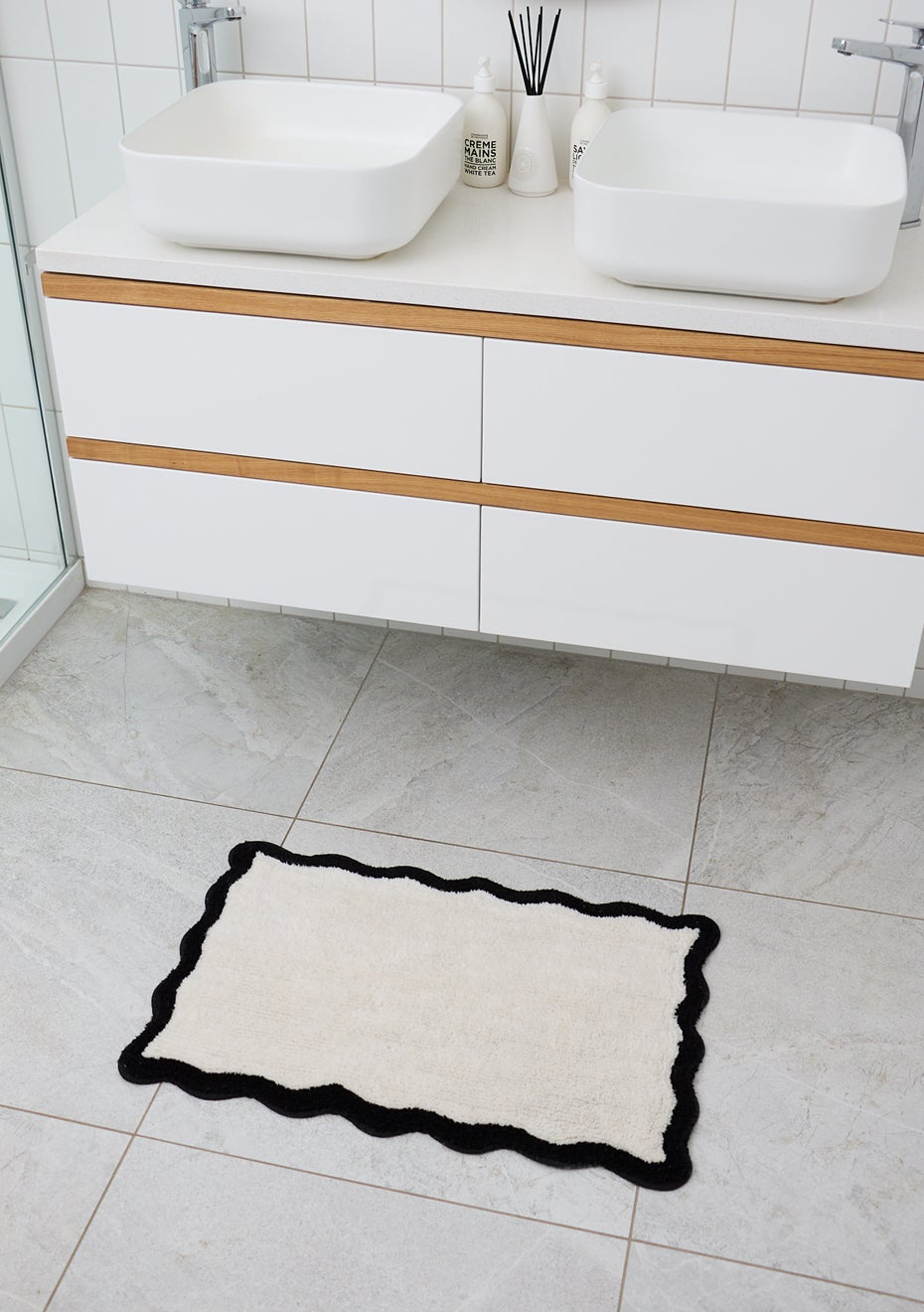 George Collective - Cotton Bath Mat - Wavy Border - White/BlackCLEARANCE
