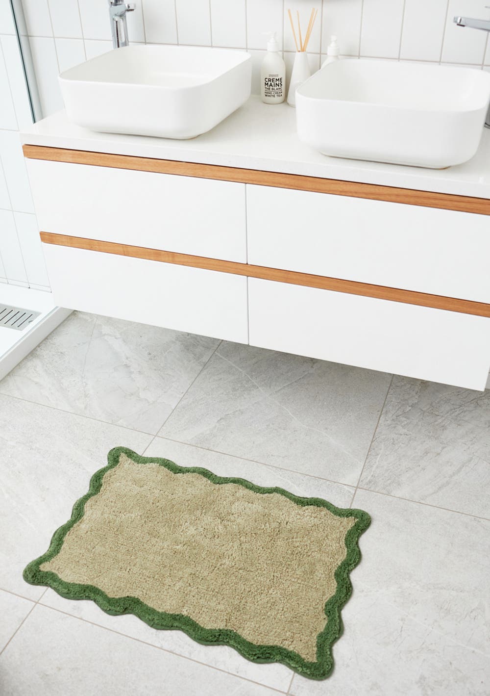 George Collective - Cotton Bath Mat - Wavy Border - PistachioCLEARANCE