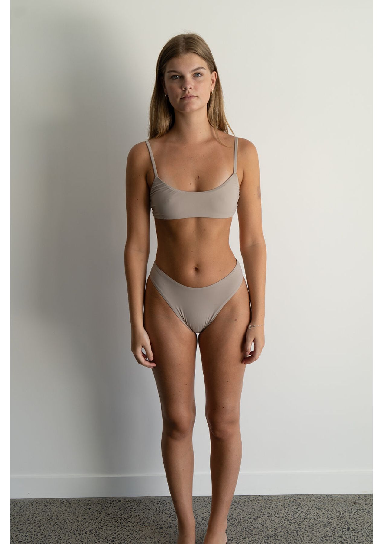 A familiar and effortless crop-style top with a curved neckline for a naturally flattering shape. Designed for minimal tan lines with string ties and adjustable straps, ensuring a secure fit and an elegant open-back finish. Crafted with seamless edges and chrome and nickel free hardware that won't heat up in the sun. Styled with our Cheeky Sporty Bottom. Our swim fabric is knitted with elastane and microfiber biodegradable nylon. Amni Soul Eco® is the world's first biodegradable polyamide, developed and manufactured in Brazil using reclaimed water and is free of toxic chemicals. Read more about our fabric here.
