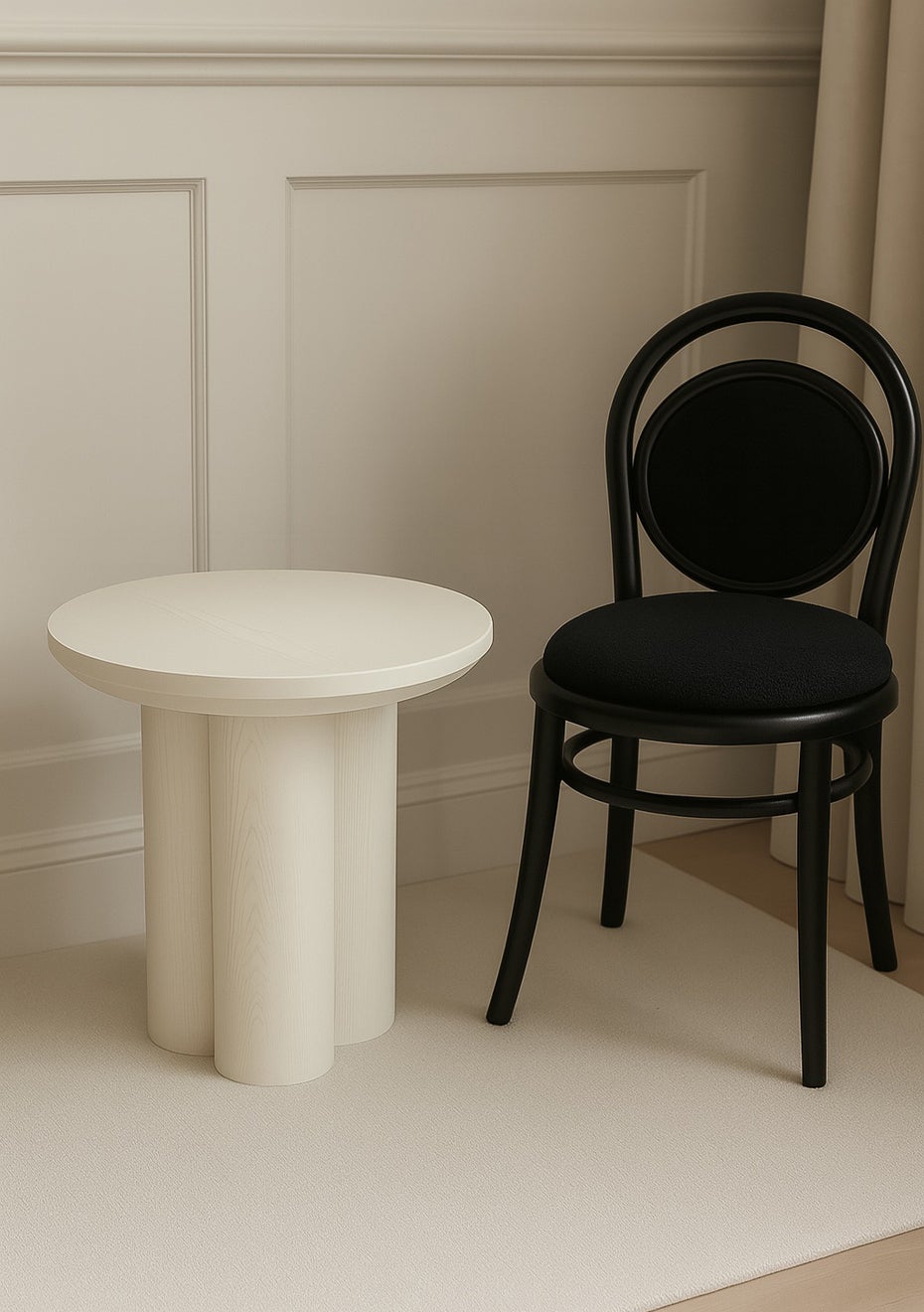 Defined by architectural presence and minimalist sophistication, this table brings modern luxury to any setting. Featuring a beautifully crafted top—available in a range of shapes—this piece is finished in a premium wood veneer that highlights the natural grain and texture of fine wood. The distinctive pedestal base, composed of sculptural cylindrical forms, delivers both visual impact and balanced support.