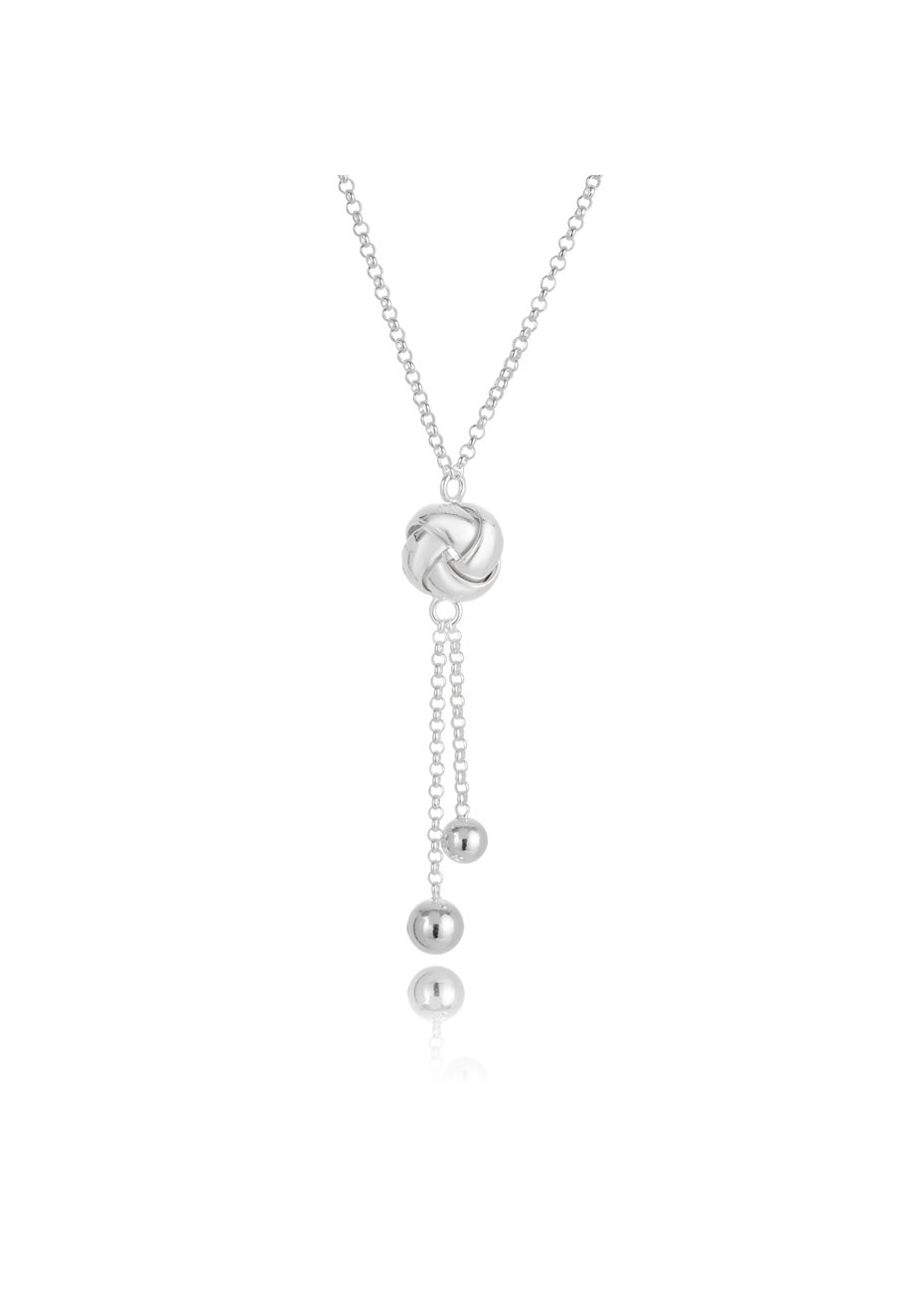 This stylish necklace is made in Italy, and features an eye-catching knot with two chain drops anchored with a ball . A must have, or an amazing gift for someone special. The specifications of this piece of Jewellery are: Genuine sterling silver Made in Italy Knot diameter approximately 10mm Ball diameter approximately 1 x 5mm & 1x 4mm Double chain drop lengths including balls is approximately 25mm & 35mm Chain length is 42+5cm extension