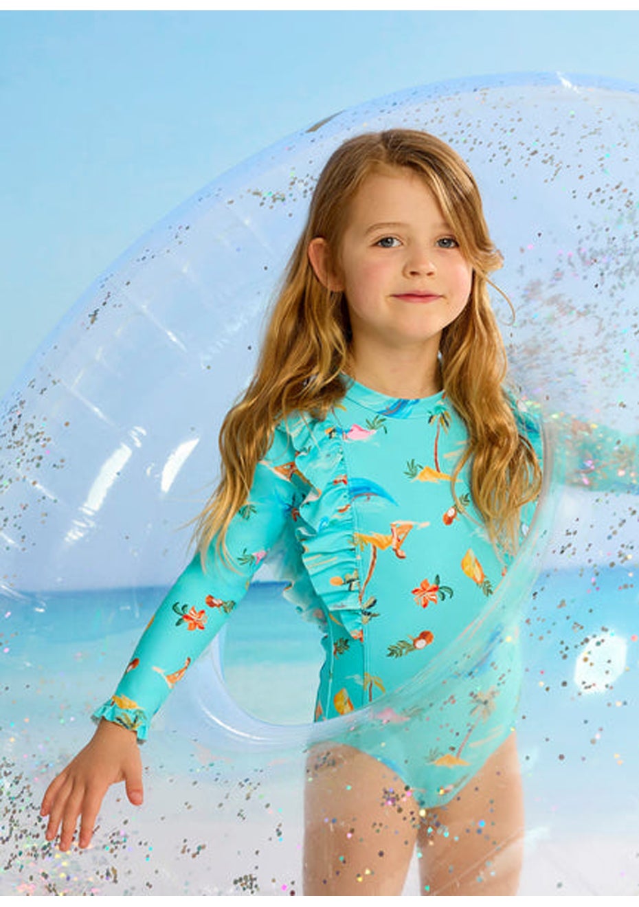 Seafolly - Isla Palm Frill Paddlesuit - Isla Palm Blue