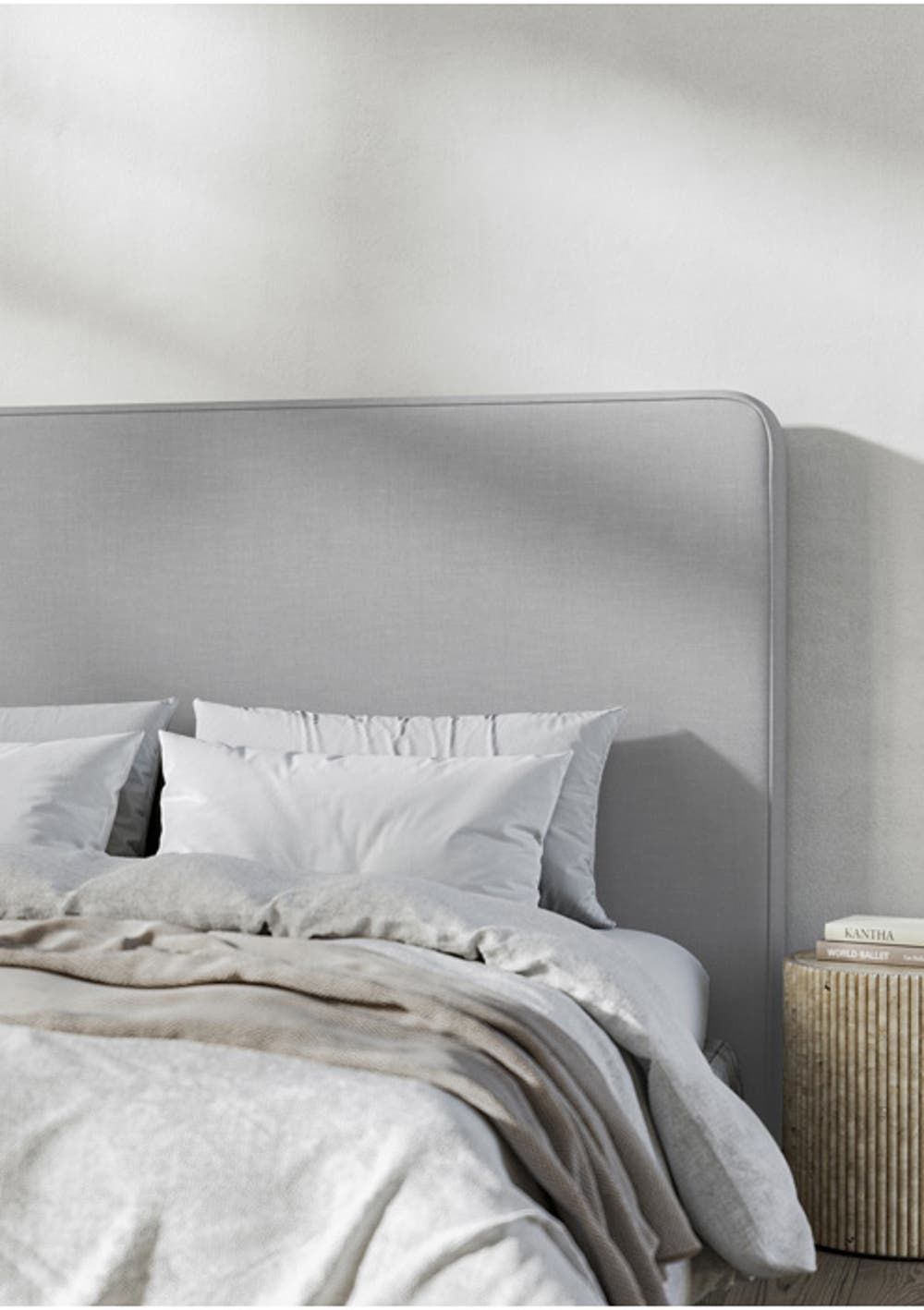George Collective - Arc Piped Linen Look Headboard - Queen - Grey MarlePREORDER