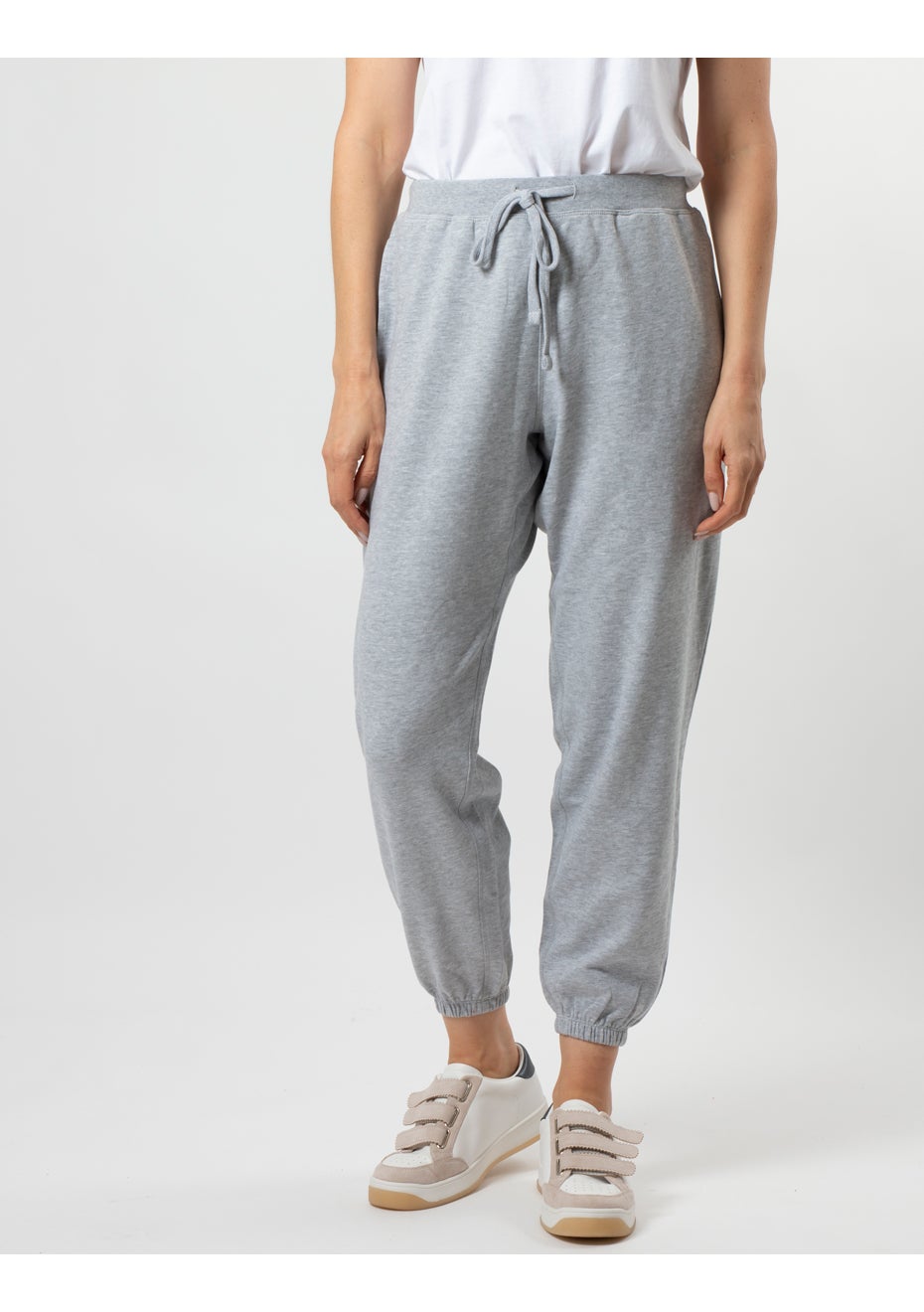 Slim leg track pant with elasticated waist and tie, elasticated ankle at hem, side pockets and back patch pocket with logo