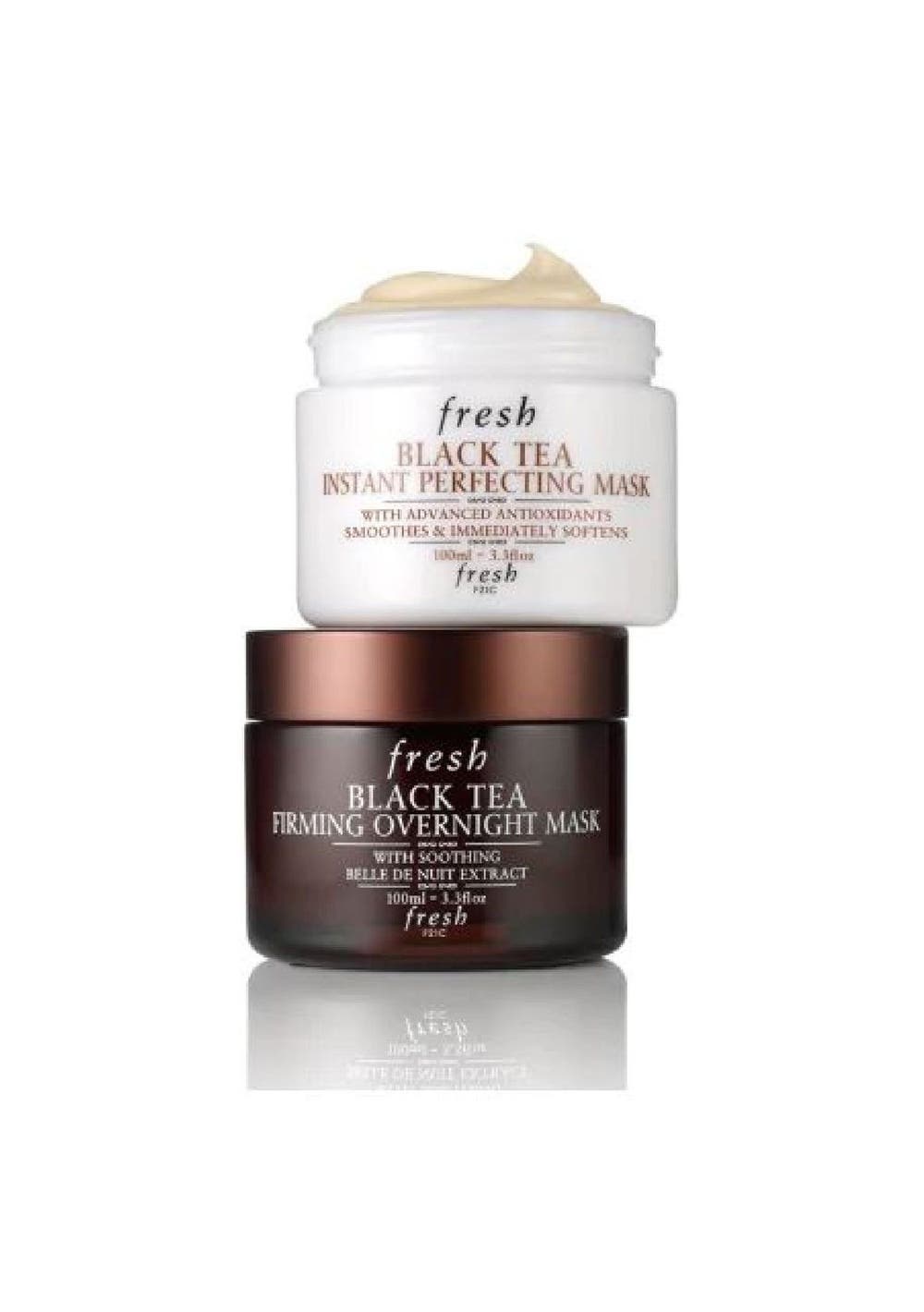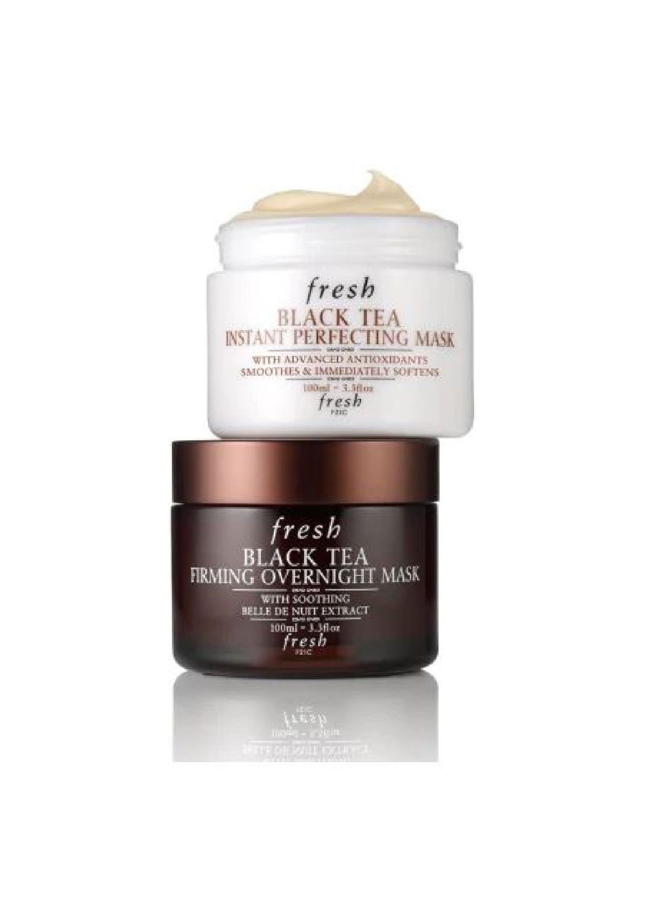 Fresh Black Instant Perfecting Mask (100ml)Black Instant Perfecting Mask with advanced antioxidants is a hydrating treatment that immediately reveals softer, firmer, healthier-looking skin. The innovative formula's velvety whipped texture has an immediate cooling effect to refresh the skin and the senses.Black ferment is an advanced antioxidant that helps to defend against wrinkle-causing free radicals while softening, smoothing, and enhancing luster. Lychee seed extract helps maintain the skin‚ elasticity.Polysaccharides help to smooth the skin.Jicama root juice is notable for its hydrating and nourishing properties.Fresh Black Firming Overnight Mask (100ml)A firming sleeping mask that is enriched with black complex and moisturizing plant extracts helps to moisture skin and enhance the face contour. Skin will look young and become energetic in the next morning!Product feature:‚óè Moisturizing skin: Smooth and rich texture allows the nutrients enter the skin deeply and keeps moisturizing skin all the night long.‚óè Younger-looking skin: Provide skin a natural nighttime recovery process, which can diminish signs of fatigue. Skin looks revitalized in the next morning.‚óè Firming skin: With age-defying Black Complex, it helps to enhance the skin‚ elasticity and contoured complexions.how to useUse at the last step of your night routine, gently apply onto face before go to bed. Then wash the face in the next morning.