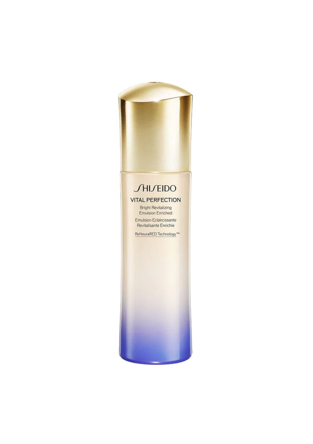 SHISEIDO Vital Perfection White Revitalizing Emulsion Enriched activates functions in the skin to improve various signs of aging. Revitalizes skin that has become thin and toughened with age, and increases its elasticity. Provides rich long-lasting moisture, for deeply resilient skin that is smooth to the touch.