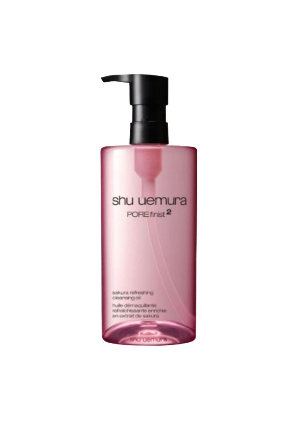 Shu Uemura Porefinist² Sakura Refreshing Cleansing Oil is infused with Japanese sakura petal extract, the incredibly lightweight cleansing oil goes beyond make-up removal to dissolve and wash away excess sebum and blackheads that are stuck inside pores, leaving the skin feeling refined and hydrated. The cleansing oil is designed to be used as the first step in a double-cleansing routine. It contains cherry blossom extract and other ingredients that help clarify and refine the skin, leaving it feeling refreshed and smooth.