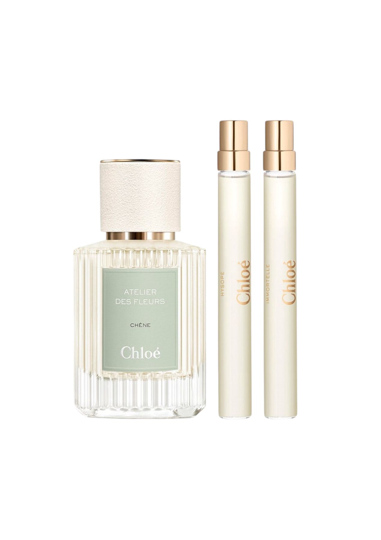 This Chlo perfume gift set features three iconic fragrances from the Atelier des Fleurs line. Inside you will find a 50ml (1.6oz) Ch™ne Eau de Parfum, alongside Hyssop and Immortelle in a scaled-down penspray format perfect for travel. Discover Ch™ne alone or combine it with the other fragrances in a pair or trio for a more personalised scent. Ch™ne, a woody Eau de Parfum with warm and enveloping notes. Hyssop, a fresh and breezy Eau de Parfum unveiling a pure and crisp note. Immortelle, a solar Eau de Parfum with warm and salty notes. The Chlo Atelier Des Fleurs Spring Perfume Gift Set contains: Chlo Ch™ne Eau de Parfum 50ml Chlo Hyssop Penspray 10m Chlo Immortelle Penspray 10ml