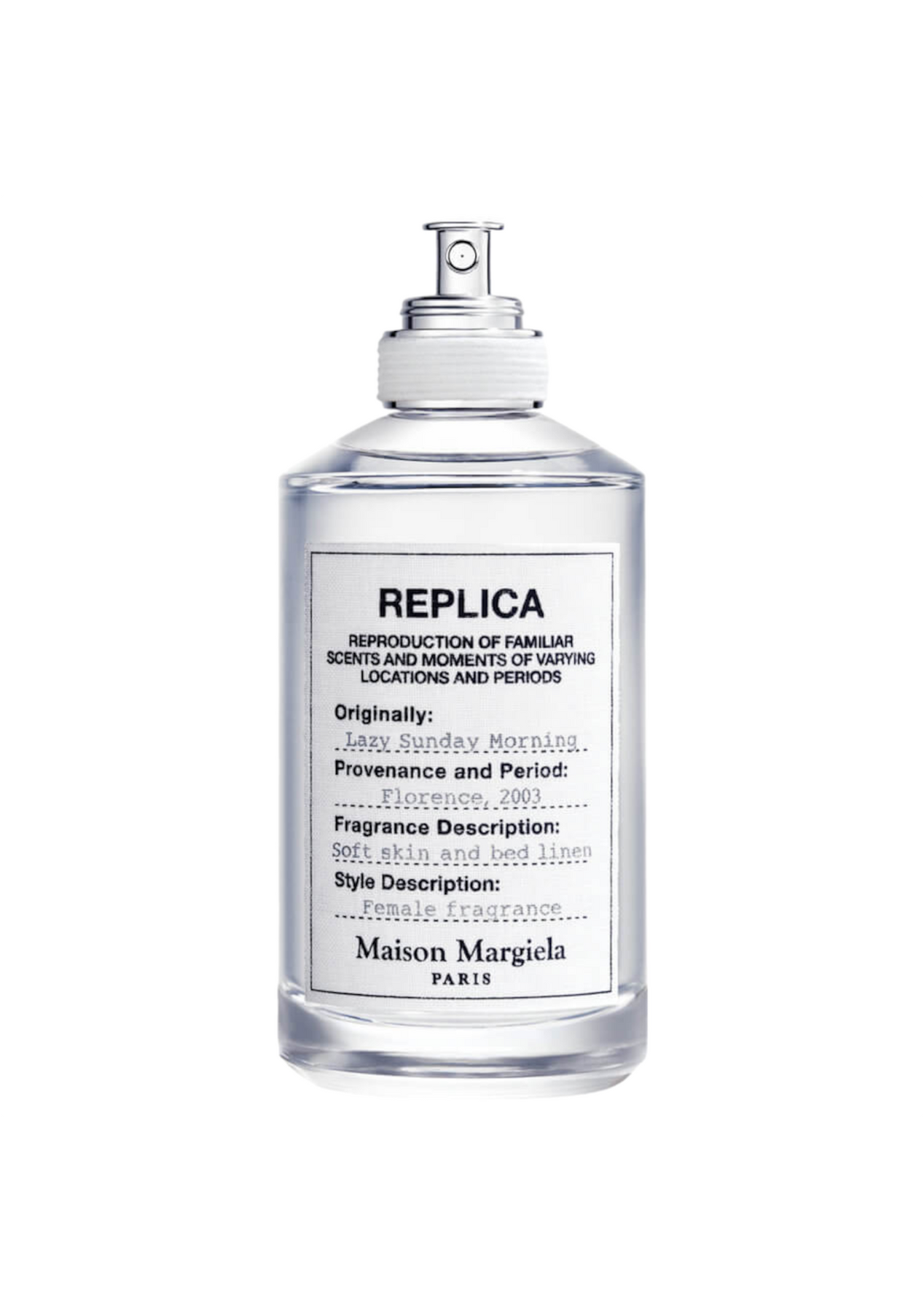 Maison Margiela's Replica Lazy Sunday Morning captures the comforting and serene atmosphere of a peaceful Sunday morning. Maison Margiela's Replica Lazy Sunday Morning evokes the experience of waking up to the gentle sunlight, fresh sheets, and a sense of tranquility. It is a soft, clean, and airy fragrance that seeks to recreate the feeling of relaxation and simplicity. The key notes in Maison Margiela Replica Lazy Sunday Morning include: Lily of the Valley: Lily of the valley is a delicate and floral note that adds a fresh and light aspect to the fragrance. Pear Accord: The note of pear contributes a subtle sweetness and fruity freshness, enhancing the overall composition. Iris: Iris adds a powdery and elegant quality to the fragrance, creating a sense of softness and tranquility. White Musk: White musk provides a clean and comforting base, giving a sense of gentle warmth and familiarity. These notes, along with other supporting accords, create a fragrance that aims to transport you to a calm and carefree Sunday morning, where you can enjoy the simple pleasures of relaxation and serenity.