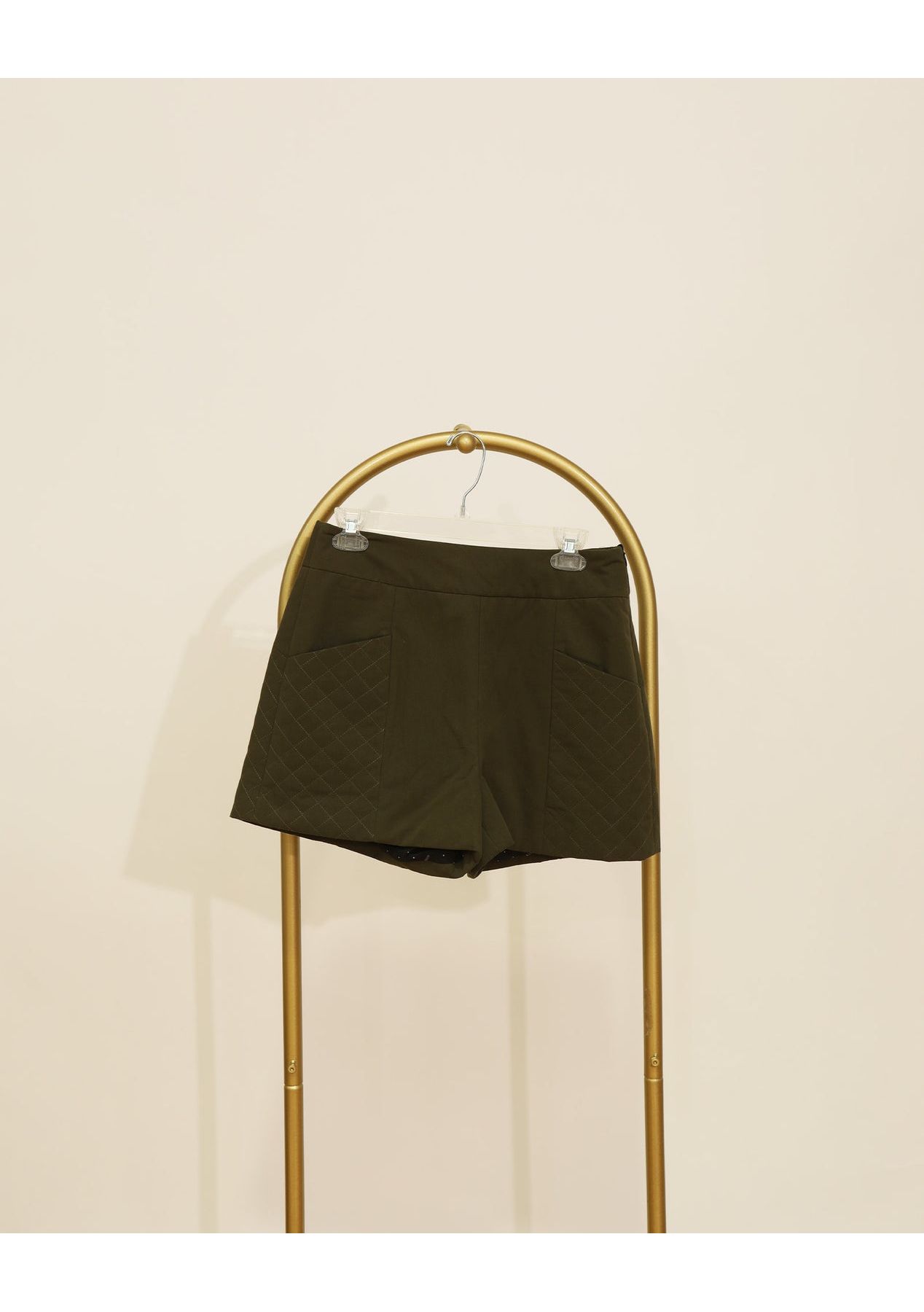 Belle & Bloom - High-Waisted Shorts with Quilted Panel - Dark Green