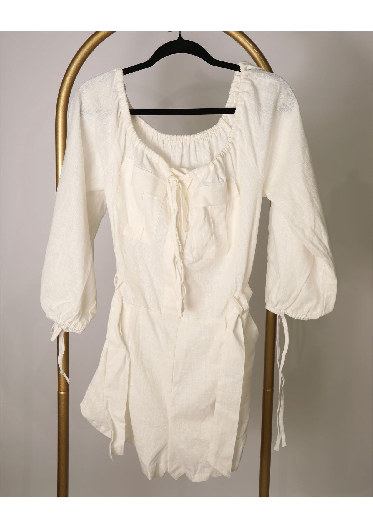 Belle & Bloom - Linen Playsuit with Tie-Waist Detailing - White