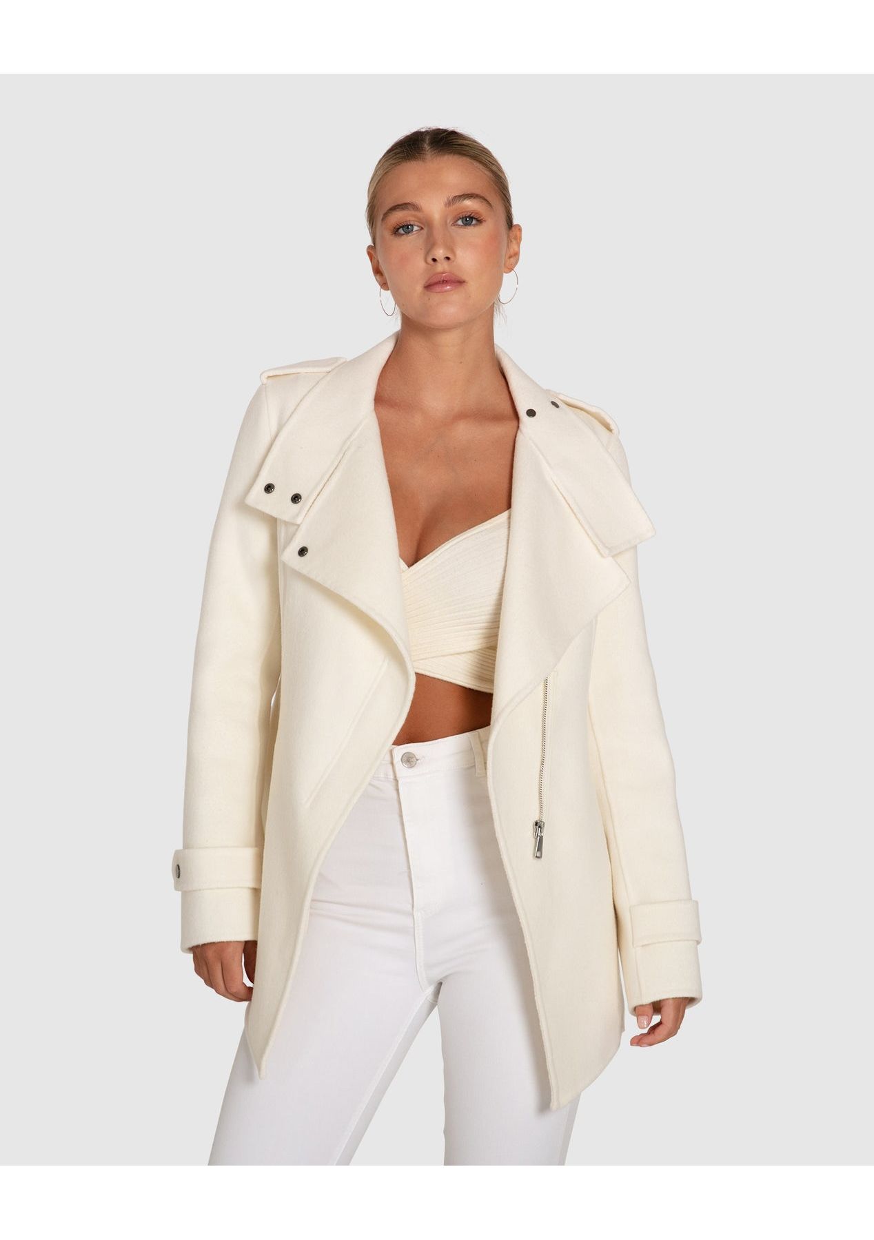 Belle & Bloom - Bad Girl Wool Blend Moto Coat - Cream