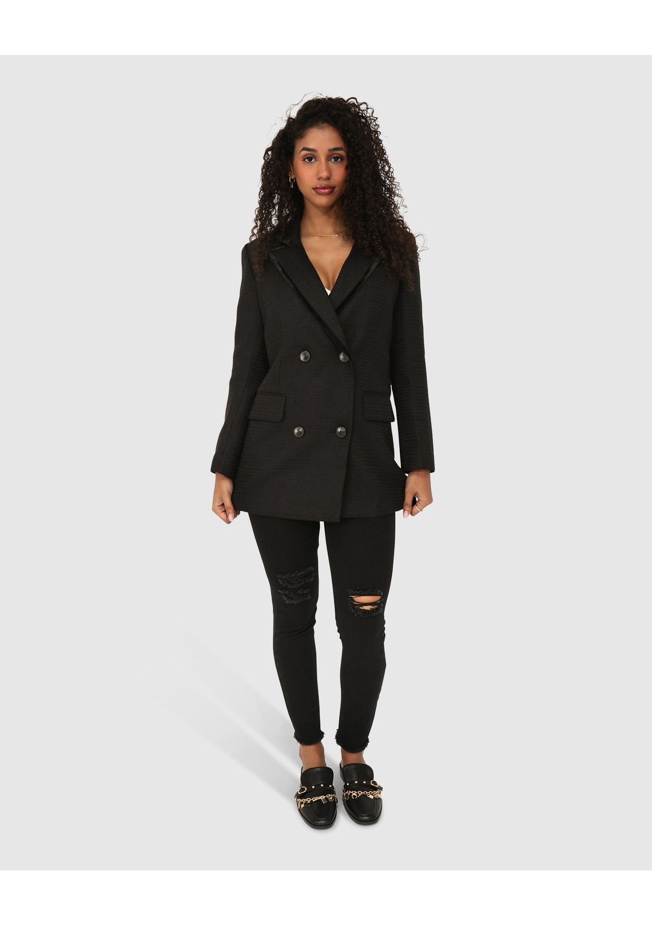 Belle & Bloom - Because Of You Trimmed Blazer Dress - Black