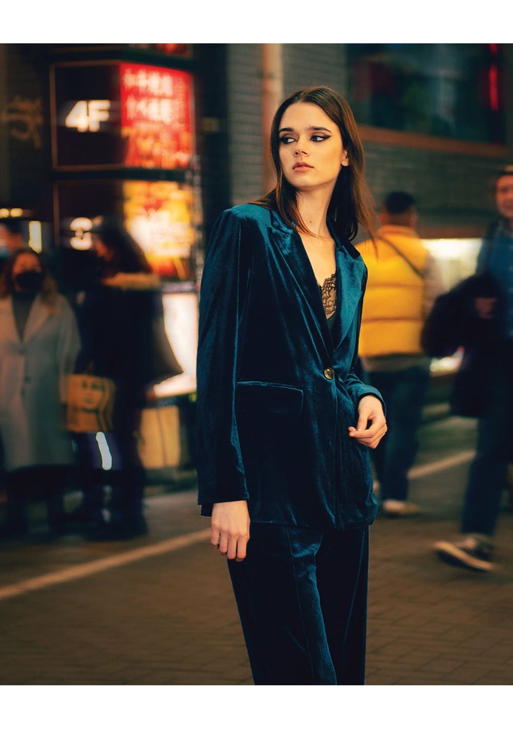 Whether worn casual or dressy, the Eternity Velvet Blazer looks opulent and chic in its loose, modern cut. Fabric: 100% Polyester Lining: 100% Polyester Length: 66cm (size small) Relaxed fit Notch lapel collar Single-breasted closure Side pockets with flap