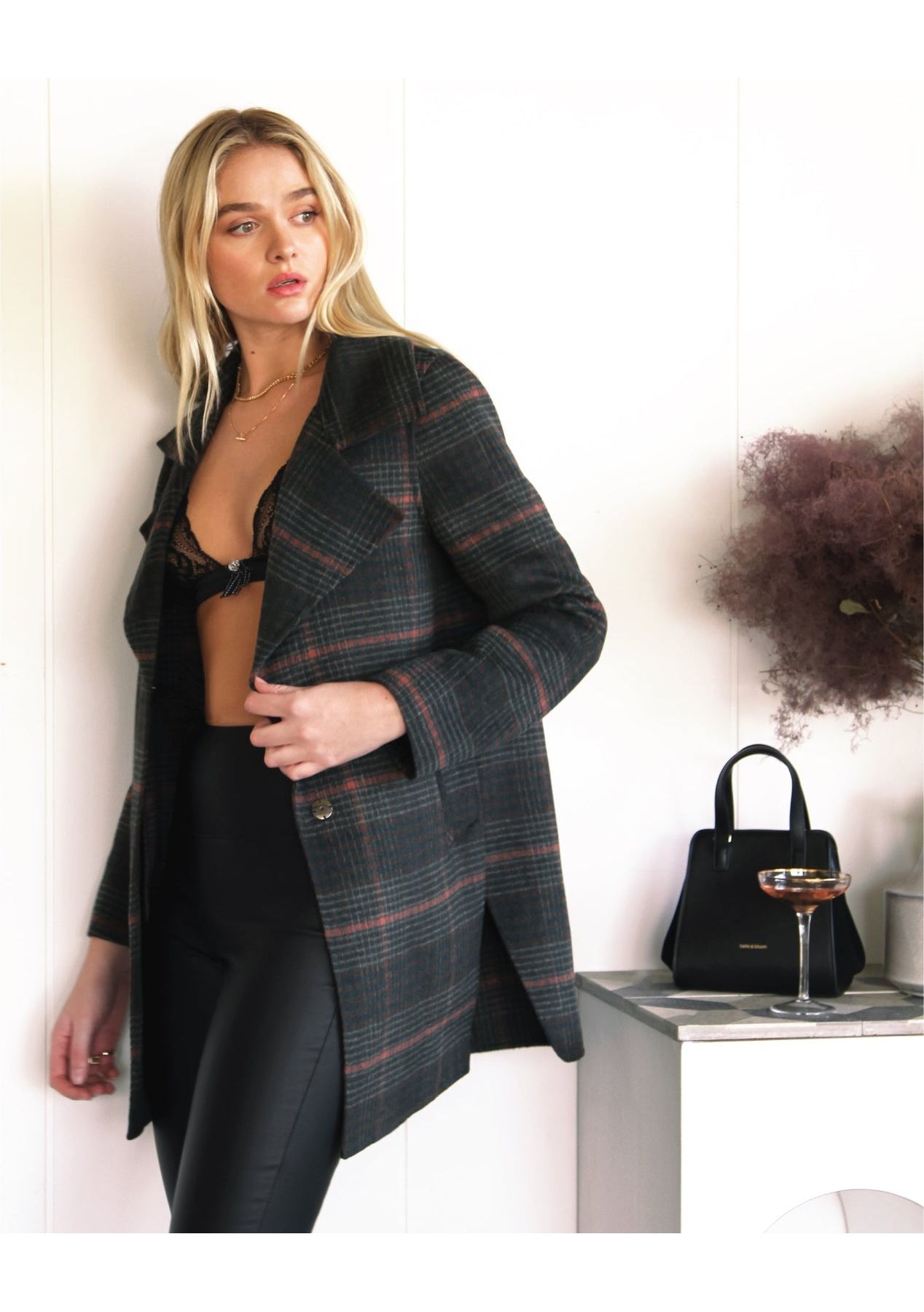 Belle & Bloom - Ex-Boyfriend Wool Blend Oversized Jacket - Brown Plaid