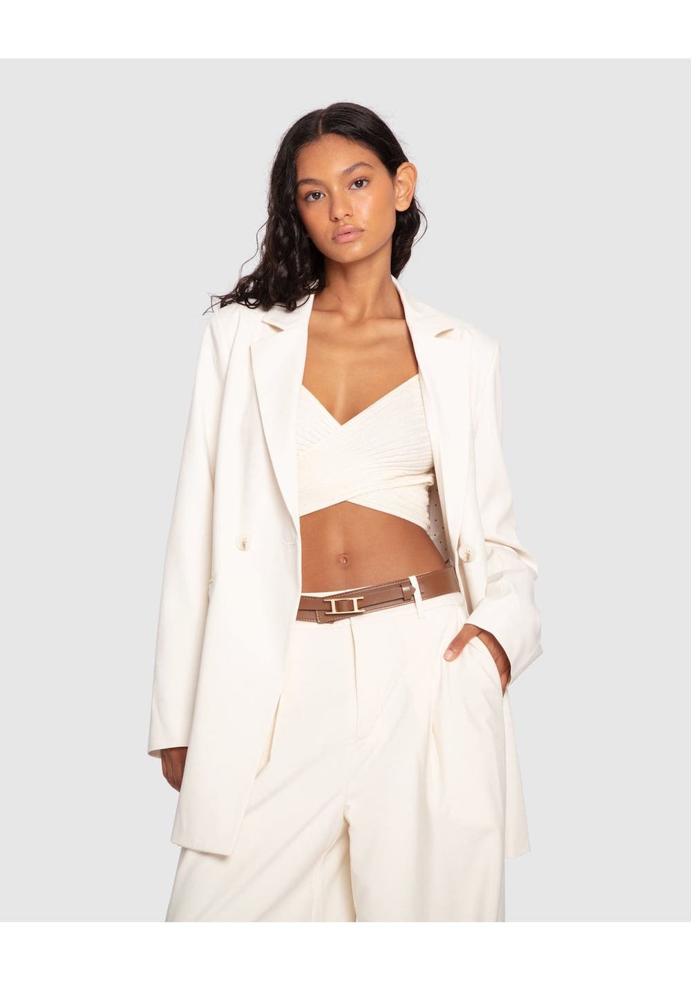 Our best-selling Kensington blazer has had an update with the Make It Mine Blazer. Featuring the same classic, oversized silhouette of our Kensington, but in a light wool to pair with the ready for your love wide leg pant – this classic duo in a soft cream can be mixed and matched throughout your existing wardrobe to take you through all occasions and seasons. Add the Make It Mine Wool Vest for a casual take on the three-piece suit that is sure to be on high rotation in your closet. Fabric composition: 8% Wool, 68% Polyester, 19% Viscose, 5% Elastane Lining: 100% Polyester Length: 78cm (size small) Notched collar Welt pockets Double-breasted button closure Oversized fit