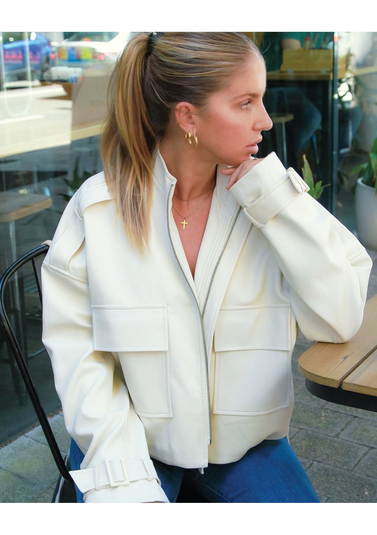 Belle & Bloom - Reload Draped Leather Look Jacket - Cream