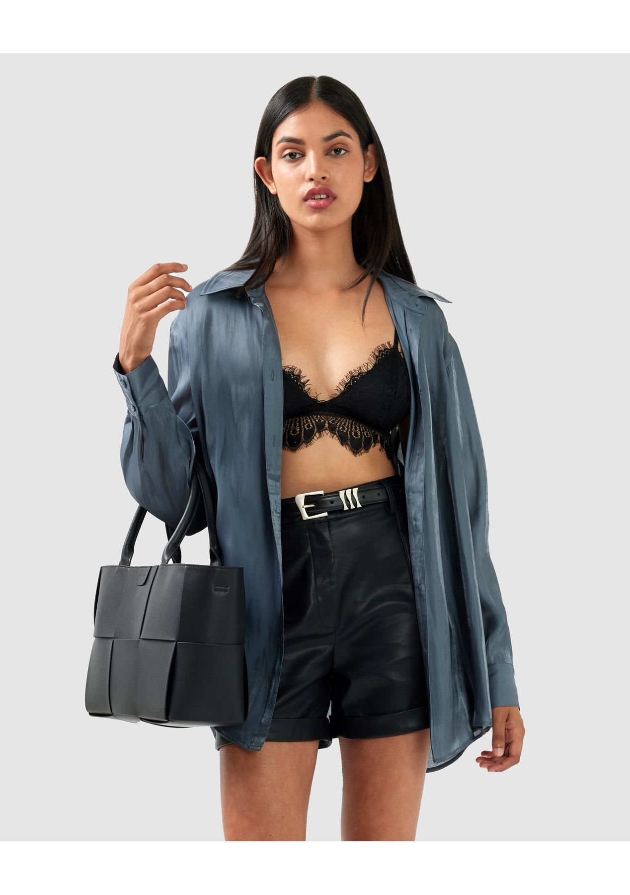 A stylish twist on a classic buckle belt, the Skyline Belt is the final touch to your office, weekend and night out outfits. Whatever the occasion, the curved buckle and triple metal belt loops are as functional as they are fun. Genuine Leather Buckle closure Metal belt loops Matte silver hardware Width: 2.4cm, Length: 71cm - 94cm (smallest hole – largest hole)