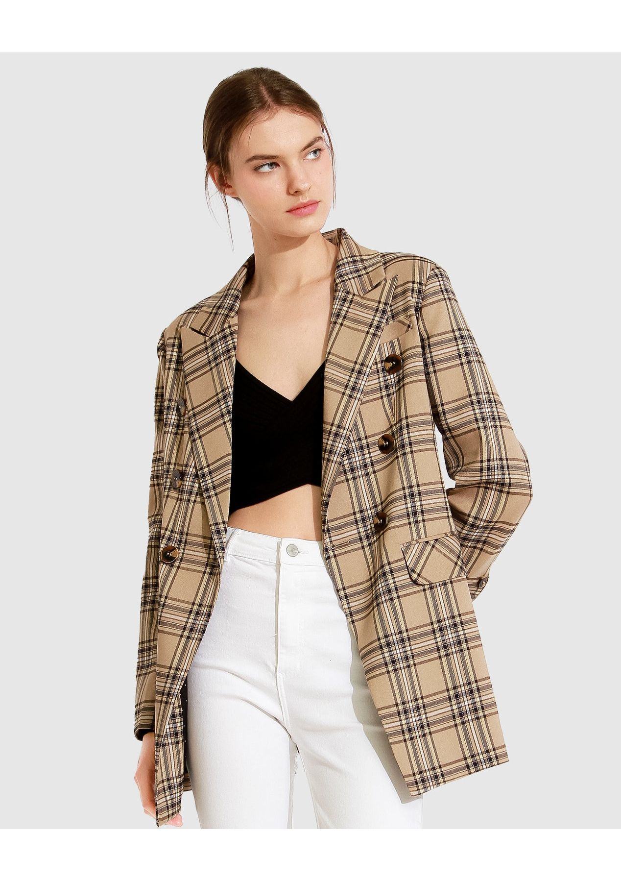 Belle & Bloom - Too Cool For Work Plaid Blazer - Camel