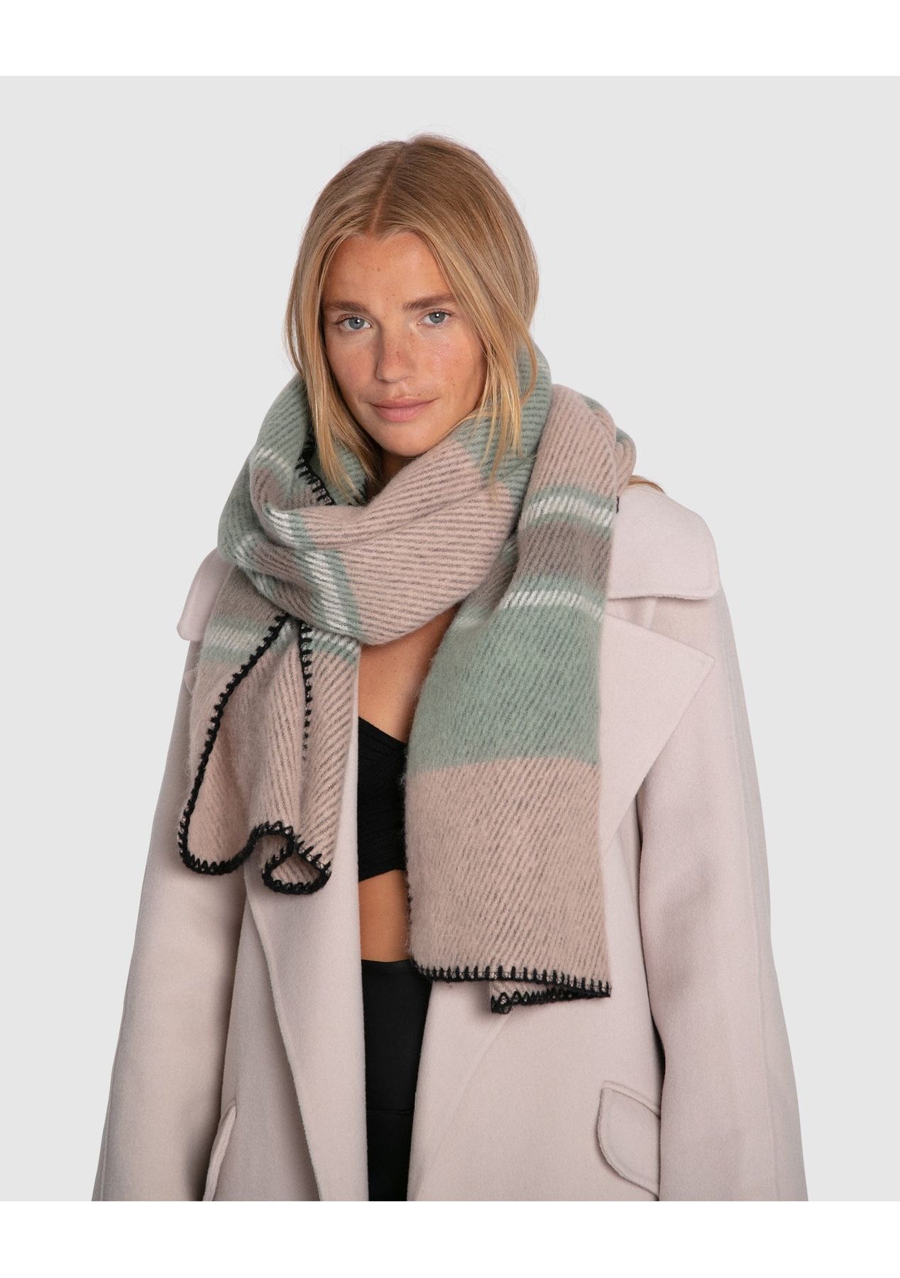 A fresh and vibrant accessory designed to bring a touch of nature-inspired elegance to your wardrobe. Featuring soft pink and icy green stripes, this scarf captures the delicate beauty of blooming s. The contrast decorative stitching along the edges adds a unique, handcrafted feel. Perfect for adding a pop of color and texture to any outfit.