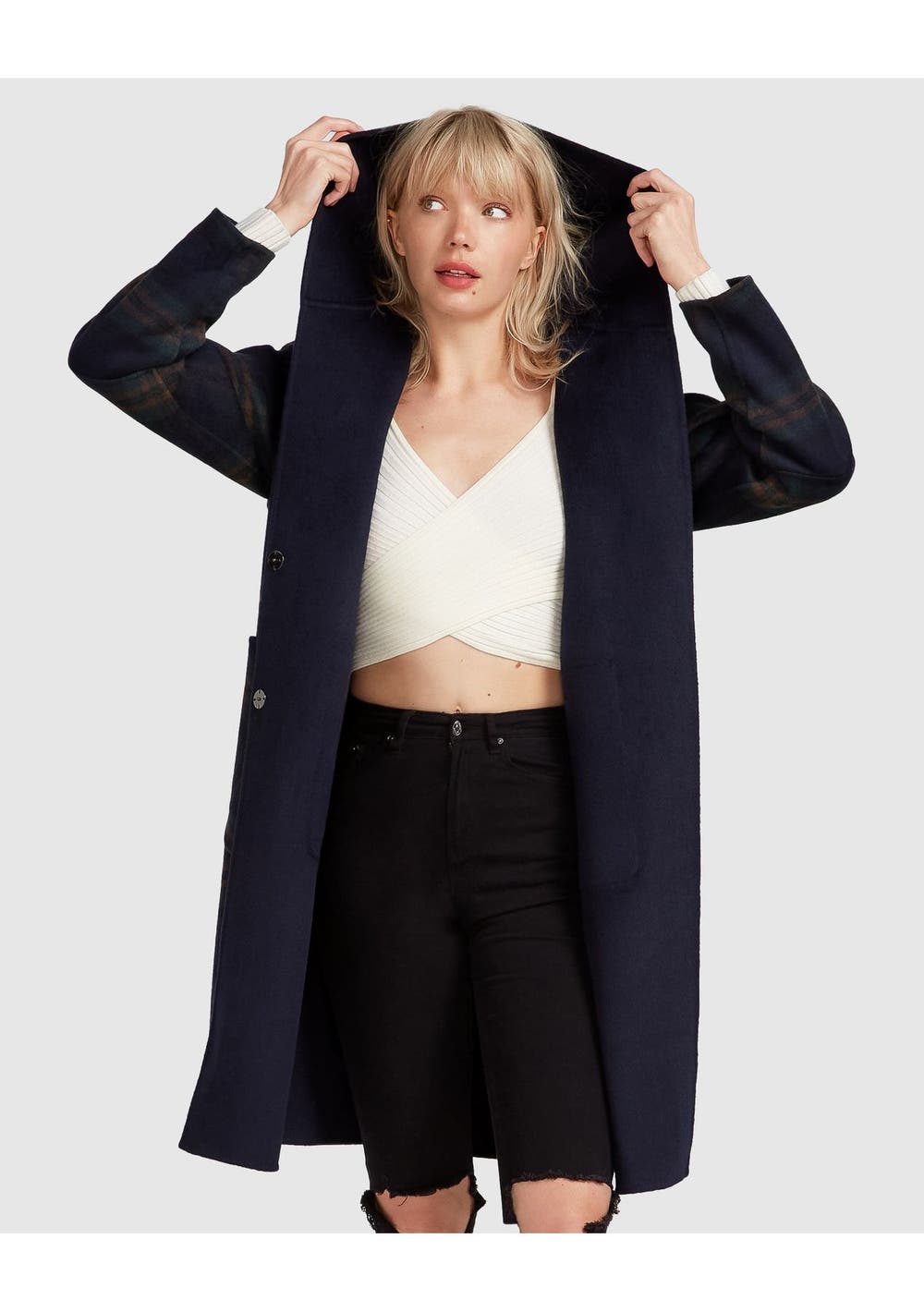Belle & Bloom - Walk This Way Wool Blend Oversized Coat - French Navy Plaid