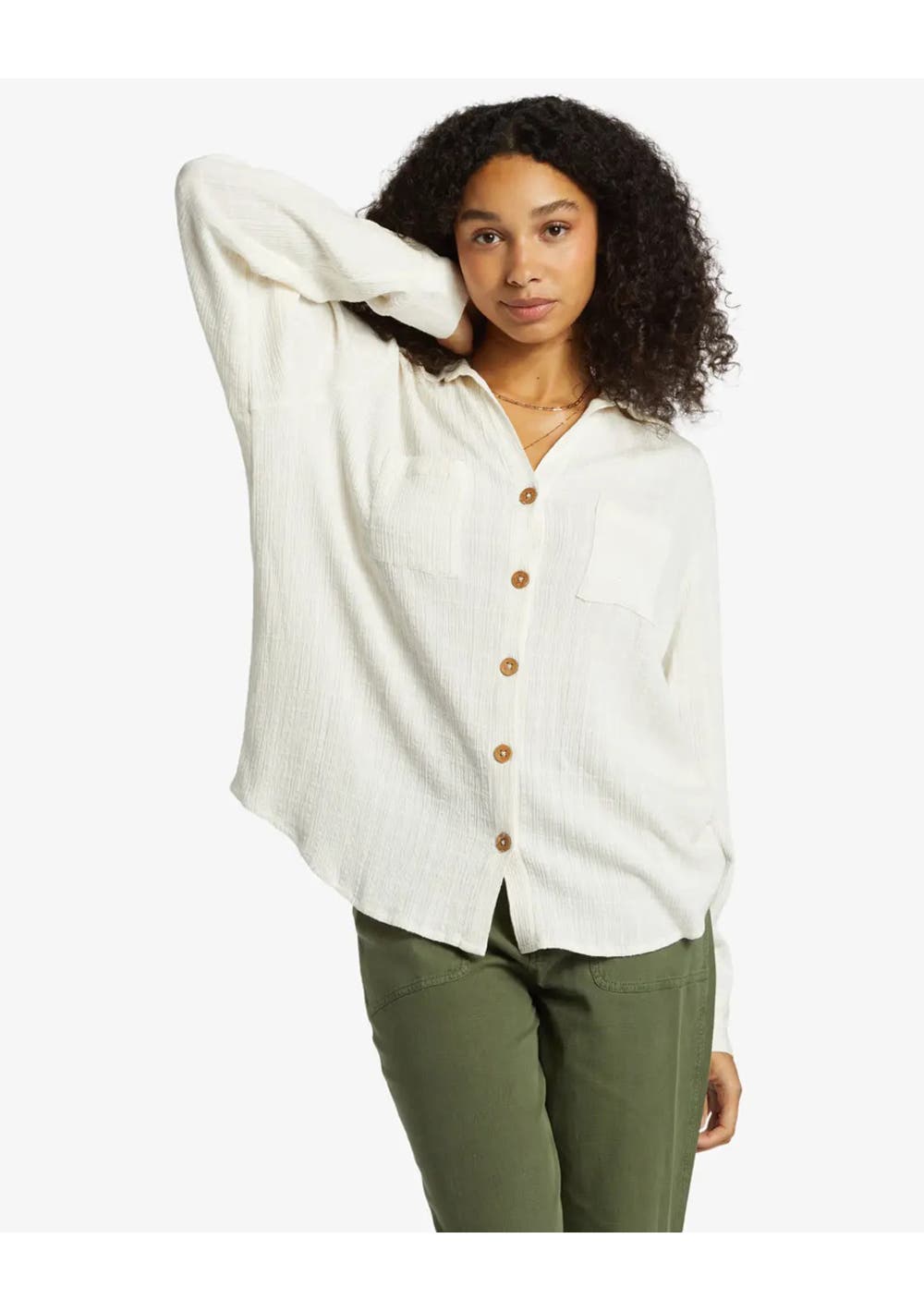 Get ready to make a statement with the Billabong Swell Blouse from the Essentials Collection. Crafted from a cotton viscose blend crinkle fabric, this long-sleeved shirt offers an oversized fit for maximum comfort and style. The collar neck and button-down closure add a classic touch, while the patch pockets at the front provide both functionality and fashion. Fabric: Cotton viscose blend crinkle fabric Fit: Oversized fit Neck: Collar neck Sleeves: Long sleeves Pockets: Patch pockets at front Closure: Button down closure Main Fabric: 60% Cotton, 40% Viscose Style: ABJWT00506