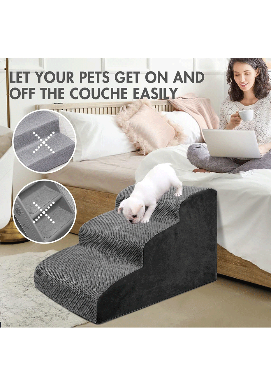 • Joint Relief for Pets: The steps reduce the amount of jumping required for your pet, minimizing stress on their joints. Perfect for senior pets or those with mobility issues.