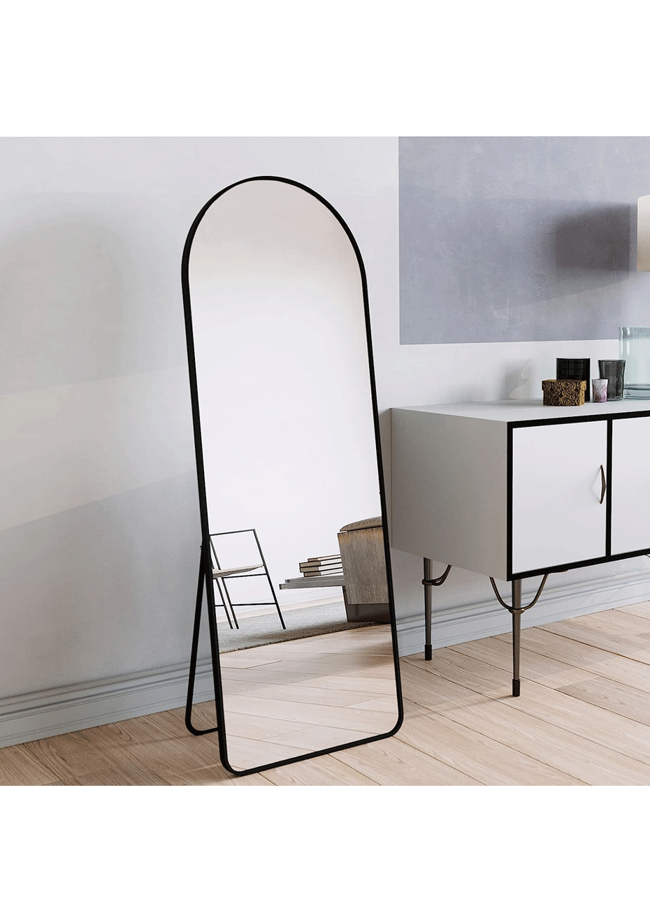 Aluminum Alloy Frame Arched Mirror 157×47cm Material: Aluminium Alloy, Glass<br>Product dimensions (LWH): 157x47x1.5 cm<br>Package dimensions (LWH): 164x55x6cm<br>Weight: 6.8Kg<br>Feature<br>Full Length Mirror: This is a full size mirror, enough for you to see your entire figure in a single glance and bring you light, beauty and confidence. The rounded corner design is more safer and protects against scratches during use<br>Unique Design: The top of the floor mirror is designed with a unique smooth arched-top frame, which especially attracts people's attention and highlights the beauty of the mirror. The thin aluminum alloy frame makes the mirror looks more classic and it is suitable for dressing in any room<br>High-quality Glass: The full body mirror is made of high-quality float glass which can provide super HD imaging and undistorted reflection. <br>Easy Installation: Our full-length mirrors can be leaned to the wall or free-standing with the stand anywhere in your room. It can also be hanged vertically and horizontally. The aluminum alloy frame is very stable and durable for your daily use<br>Package Include<br> 1 x Aluminium Alloy Frame Arched Mirror<br> 1 x set of screws<br>