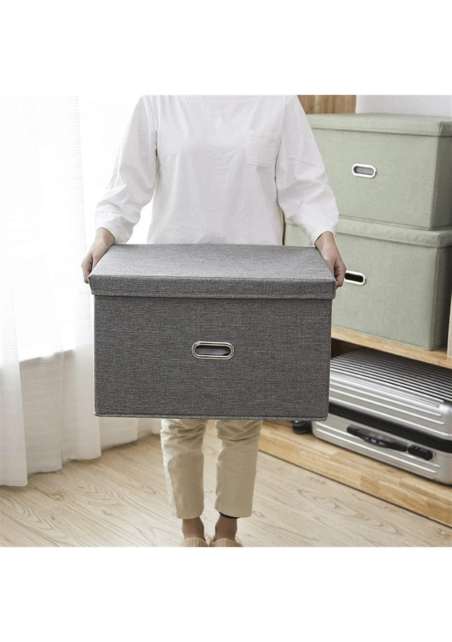 Collapsible Storage Bins with Lids and Handles - L<br>Material: Cardboard, Polyester non-woven fabric<br>Product dimensions (LWH): 44x29x30cm<br>Package dimensions (LWH): 45x31x4cm<br>Weight: 1.17Kg<br>Features:<br>• Additional Storage Space: This fabric storage box is designed to meet various storage needs, providing additional storage space for organizing sundries effectively.<br>• Intimate Design: The storage box comes with a lid to keep items protected from dust, ensuring they remain clean and tidy. The handles on both sides make it convenient for you to move the box around.<br>• Space-Saving: This storage box can be placed on cabinets or under the bed, and it can be easily folded up for storage when not in use, helping you save space.<br>• Smart Storage: Perfect for storing clothes, magazines, books, toys, CDs, newspapers, office supplies, and more. It is suitable for use in various rooms such as the living room, bedroom, store room, conservatory, playroom, etc.<br>• Easy To Clean: The storage box can be easily cleaned by wiping it with a soft cloth. However, it is not washable, so it's essential to keep it dry. Its simple and retro fashion style complements any decoration.<br>Package Include:<br>• 1 x Linen Collapsible Storage Bins with Removable Lid<br>