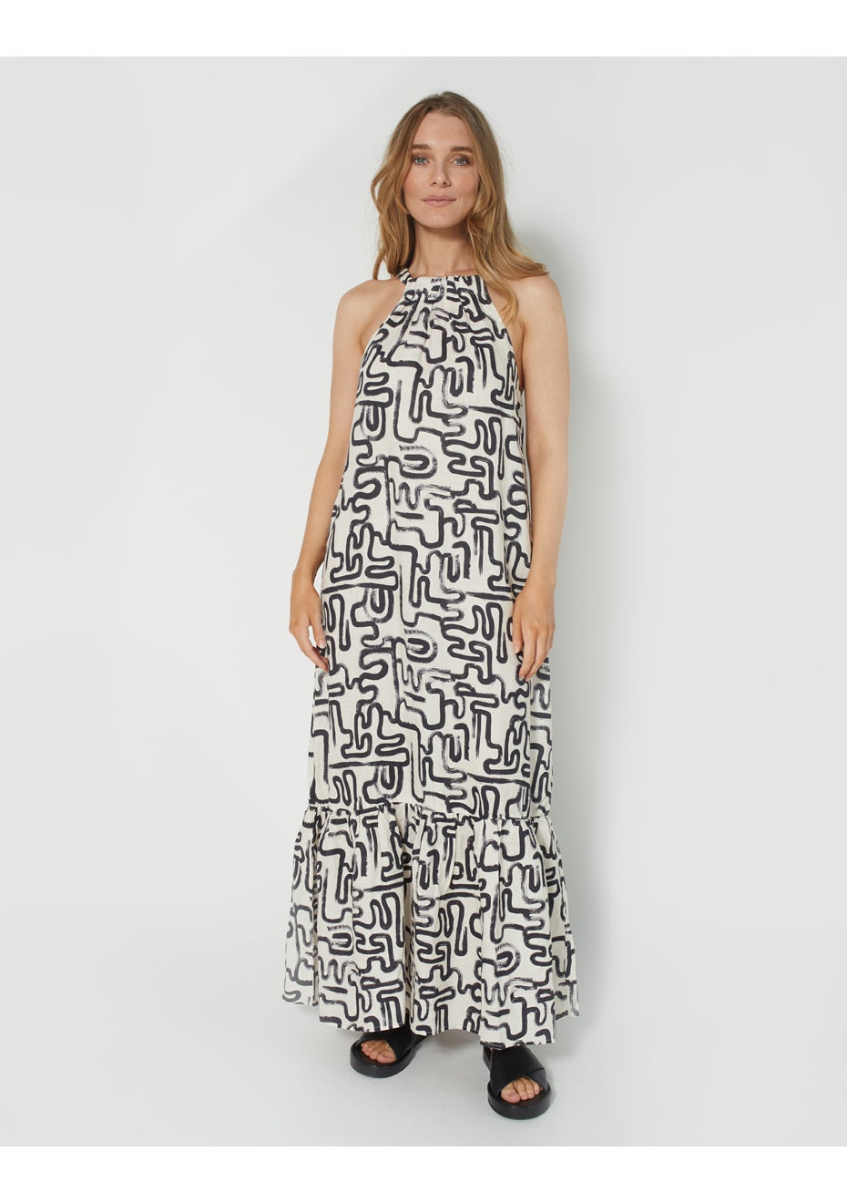Tie neck halter maxi dress with low hem gathered tier Onceit sources product globally. Onceit displays a strikethrough price based on the Manufacturer's Recommended Selling Price (MRSP) or recommended retail price (RRP) to show a price comparison. The discount percentage reflects the difference between Onceit's selling price and the MRSP or RRP. Suppliers provide these prices as either the official price set by the retailer or brand, which may vary between different retailers and regions or the price they recommend for sale. While we require suppliers to provide evidence of an RRP or MRSP, the product may not have been sold at that price before or recently in New Zealand. NZD RRP or MRSP is provided by the supplier or calculated by using the market spot rate at time of listing, we use this as the strikethrough price and calculate the discount percentage based on the difference between this price and Onceit’s selling price.