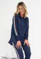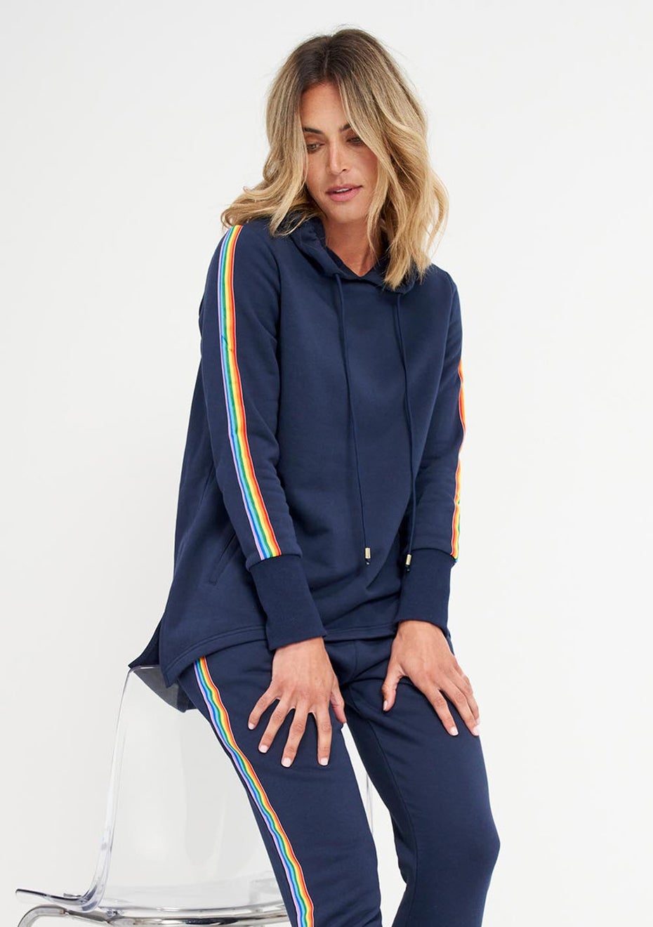 Betty Basics - Huntington Stripe Hoodie - Dark Blue Rainbow