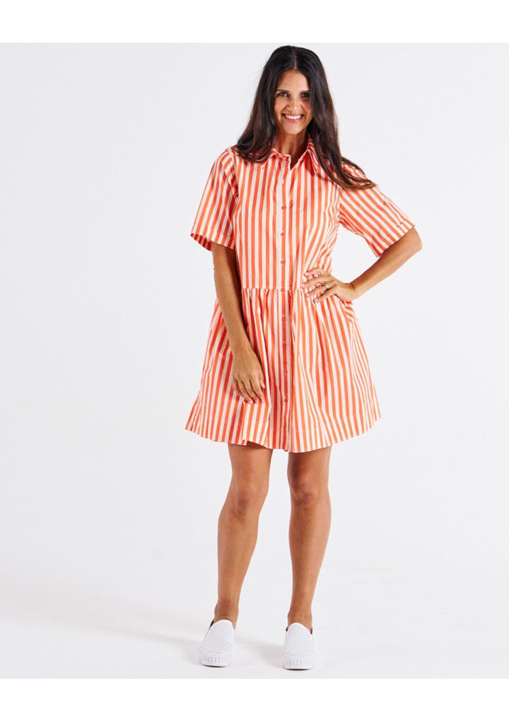 Betty Basics - Denver Cotton Dress - Tangerine Stripe