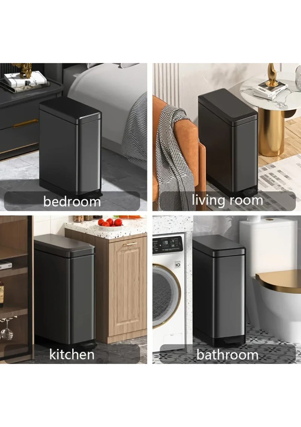 Slim, Space-Saving Design: Perfect for narrow areas in kitchens, bathrooms, bedrooms, and offices, this trash can maximizes your floor space with a sleek and modern look.