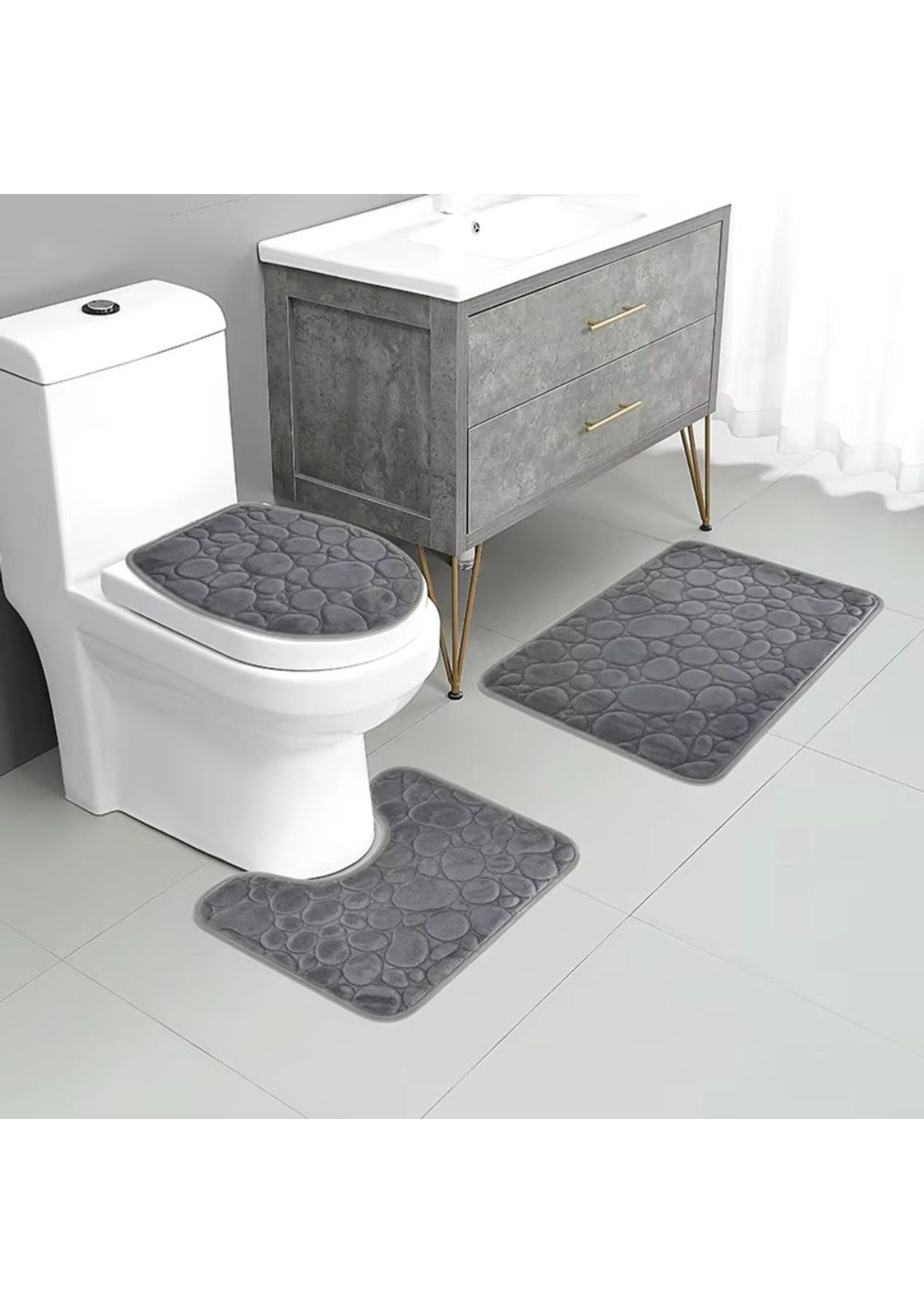 Water Absorbing Non Slip 3 Piece Bathroom Mat Set - Dark Grey