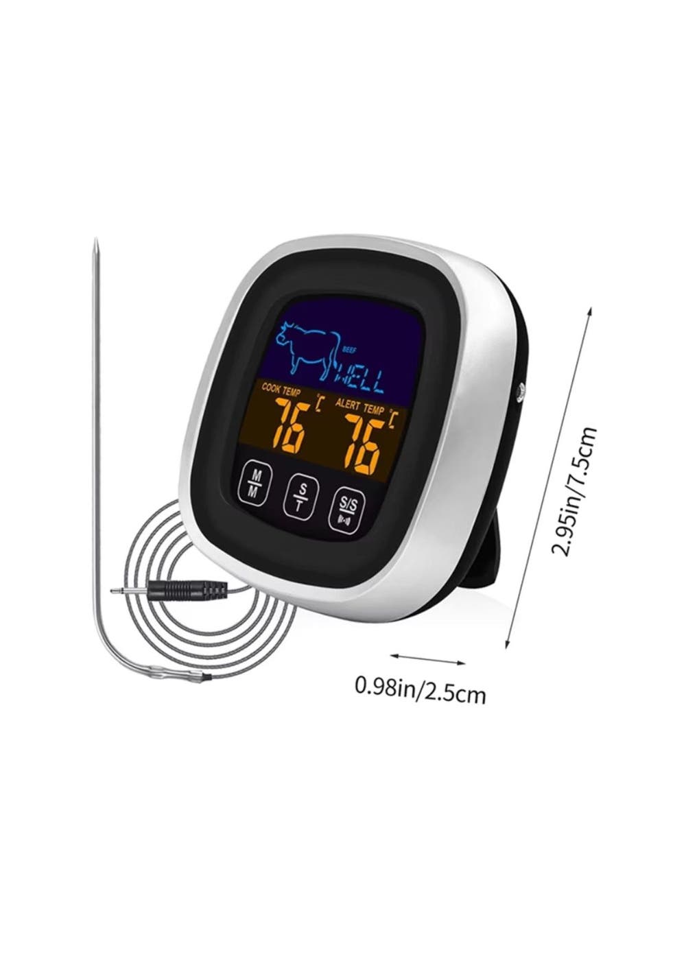 Product Description:This 2-Second Instant Accurate Reading Food Thermometer ensures perfectly cooked meals with precise temperature measurements every time. Offering ±1℉ accuracy and an instant reading speed, it is ideal for grilling, baking, roasting, or preparing beverages. The thermometer covers a wide temperature range of -58℉ to 572℉ (-50℃ to 300℃), making it highly versatile for different cooking tasks.Equipped with a large LCD display and backlight, the thermometer is easy to read in any lighting condition, whether cooking indoors or during outdoor BBQs. The waterproof 304 stainless steel probe ensures durability and hygiene, while the high-strength cable allows safe and effective monitoring in hot ovens or over the grill. Its durable ABS body enhances long-lasting performance in any kitchen environment.Customizable cooking modes allow selection from 8 preset options for beef, lamb, veal, hamburger, pork, turkey, chicken, and fish. A built-in timer and alarm make it easy to monitor cooking progress without constant checking. Switchable between °F and °C, it caters to different user preferences and international recipes.This thermometer is user-friendly—simply insert the probe, select a cooking mode, and receive a fast, accurate temperature. The battery cover doubles as a stand, and built-in magnets let it attach easily to metal surfaces. It includes 2 AAA batteries, so it's ready to use straight out of the box for all culinary needs. Product Specification:Material: ABSColor: SilverSize: 7.5 x 2.5 x 7.5cmBattery: 2 x AAA batteries (included)Weight: 128gFunction: Meat Kitchen ThermometerPackage Inclusion:1 x Thermometer 1 x High strength cable2 x AAA batteries