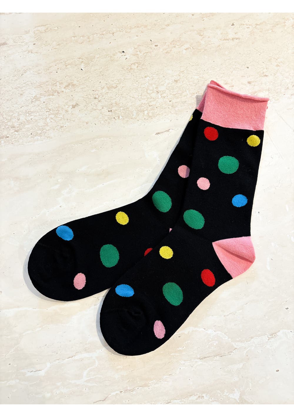 Angel Whisper - Classic Polka Crew Socks - BlackCLEARANCE