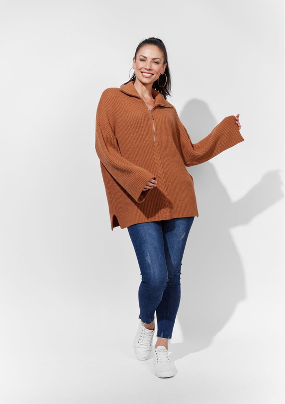 Style meets streetwear in the form of the Vannes Jumper. The collar and zipper detail adds a touch of urban-inspired edge, while the softly ribbed knit and cable detail bring warmth and cosiness. Easy to throw on over a basic t-shirt or tank, style it for a day in the city with jeans or leggings with ankle boots. FEATURES: Collar with zip detail Drop shoulder Cable detail Ribbed Knit Hip length fit Side vents 39% Acrylic, 33% Elastane, 28% Polyamide