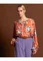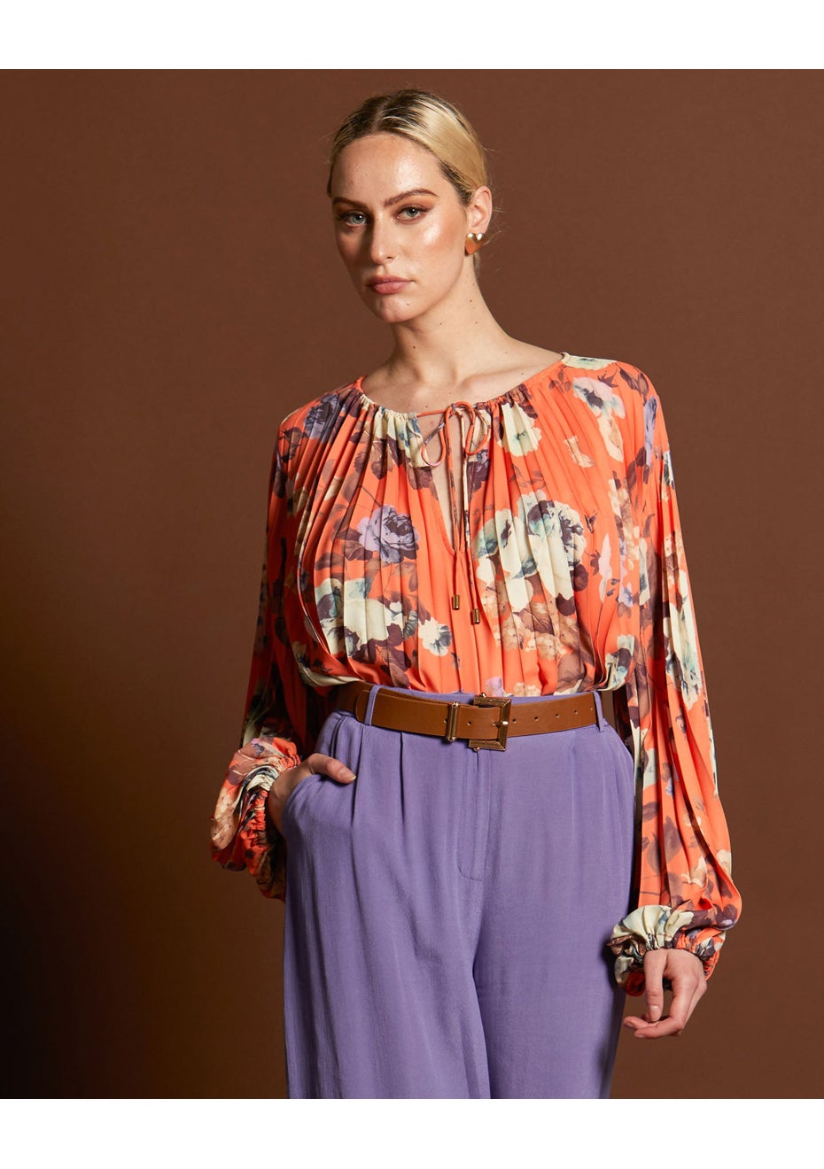 Fate - Jolene Pleated Boho Sleeve Top - Tangerine FloralCLEARANCE