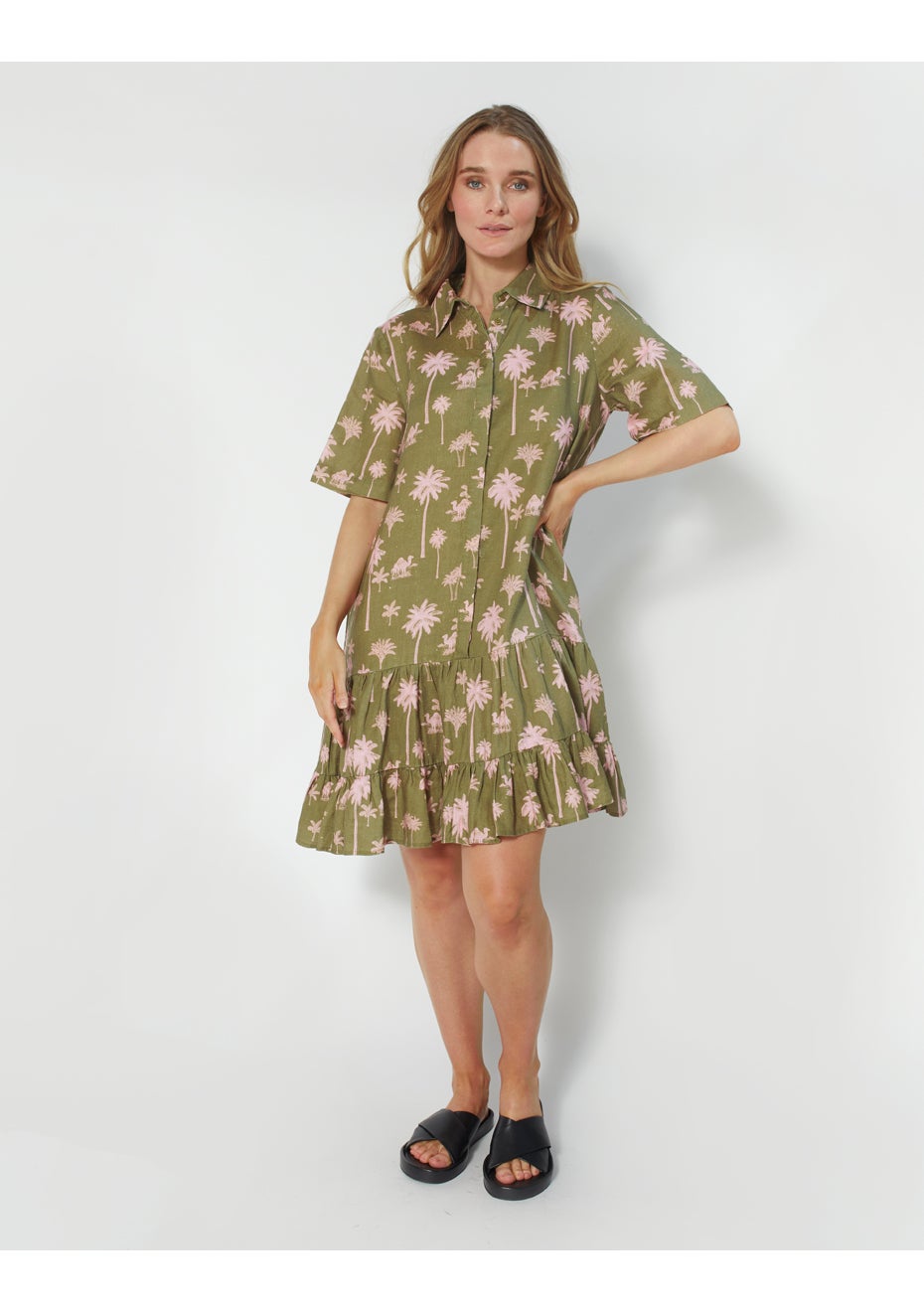 Button front shirt dress with dropped hem tier, collar and short sleeve 100% LINEN Onceit sources product globally. Onceit displays a strikethrough price based on the Manufacturer's Recommended Selling Price (MRSP) or recommended retail price (RRP) to show a price comparison. The discount percentage reflects the difference between Onceit's selling price and the MRSP or RRP. Suppliers provide these prices as either the official price set by the retailer or brand, which may vary between different retailers and regions or the price they recommend for sale. While we require suppliers to provide evidence of an RRP or MRSP, the product may not have been sold at that price before or recently in New Zealand. NZD RRP or MRSP is provided by the supplier or calculated by using the market spot rate at time of listing, we use this as the strikethrough price and calculate the discount percentage based on the difference between this price and Onceit’s selling price.