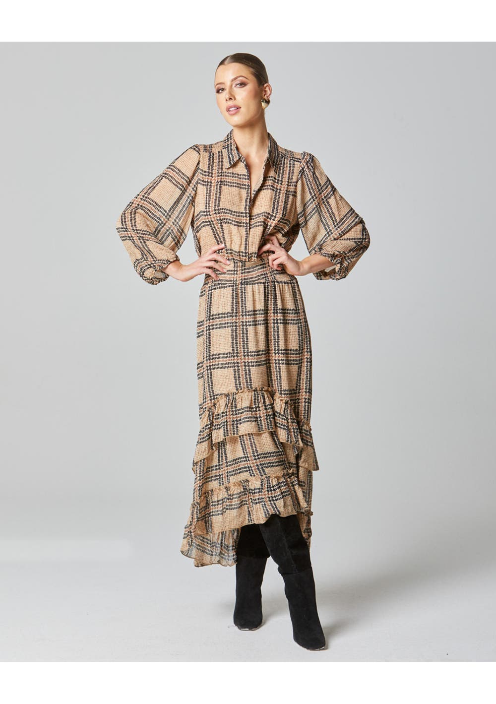 Fate - Something Beautiful Midi Puff Sleeve Shirt Dress - Houndstooth Check