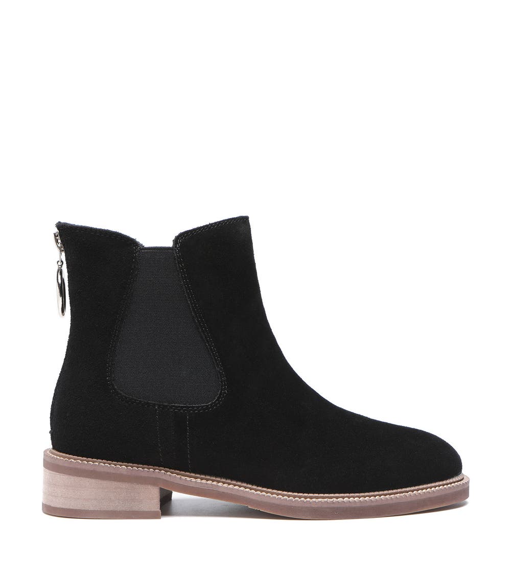 Daisy | Brand: UGG AUSTRALIAN SHEPHERD | Gender: Women | Product Type: Loafer Oxfords Flats | A suede Chelsea-style boot, the Daisy Boots feature a fun silver zip on the heel. Perfect with skinny jeans or dresses, these little black boots are a wardrobe staple and will add character to any outfit.
