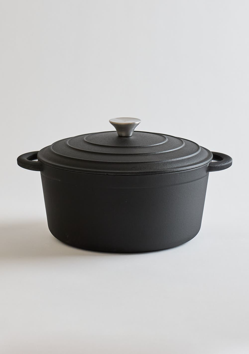 George Collective - Cast Iron Round Casserole 28cm - Matte Black/Silver LidCLEARANCE