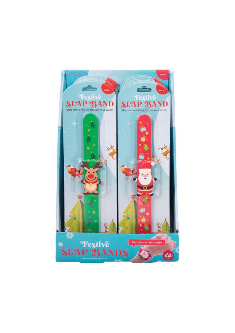 These super cute Christmas-themed slap bands mean you can take your friendly Santa or Rudolph with you wherever you go! Just slap the band onto your wrist or around the straps of your bag and off you go. Please note: This item is part of an assortment, and multiple styles are pictured. Styles are selected at random at time of dispatch.