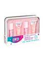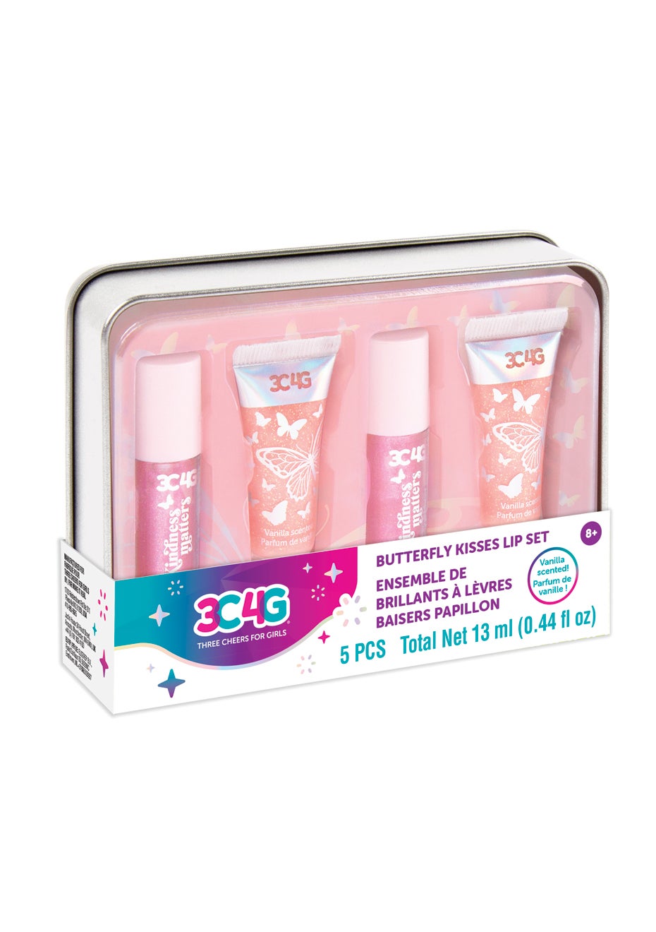 Kids will love this beautiful butterfly print adorned, reusable tin box which houses 4 fashion forward, lip smacking, shimmering lip glosses. Two tubes and two wands offer 2 ways to apply great shimmering colors. Lips will shine with these glittery pastels! Take them along with you or keep at home to have a trendy shimmering lip wherever you are.